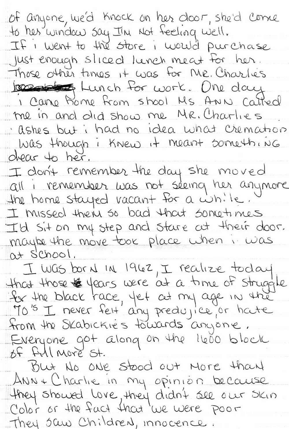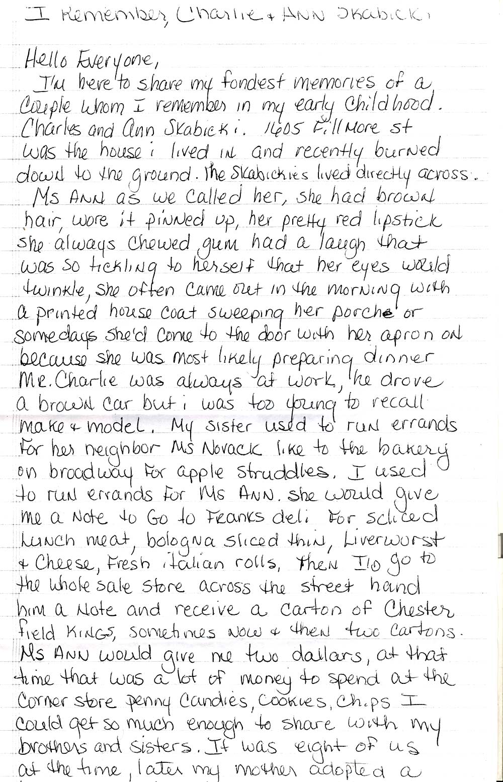 The Wilson family moved to 1605 Fillmore Street around 1968, Daughter Loretta got to know many of the elderly residents on the block, some of whom had been living there 50 years or more. The Wilson family would remain at 1605 through the mid 1980s. The Novak and Skabicki families were still on the block, as were Roy and Sarah Trachsel, and Rebecca Friar and her husband. |