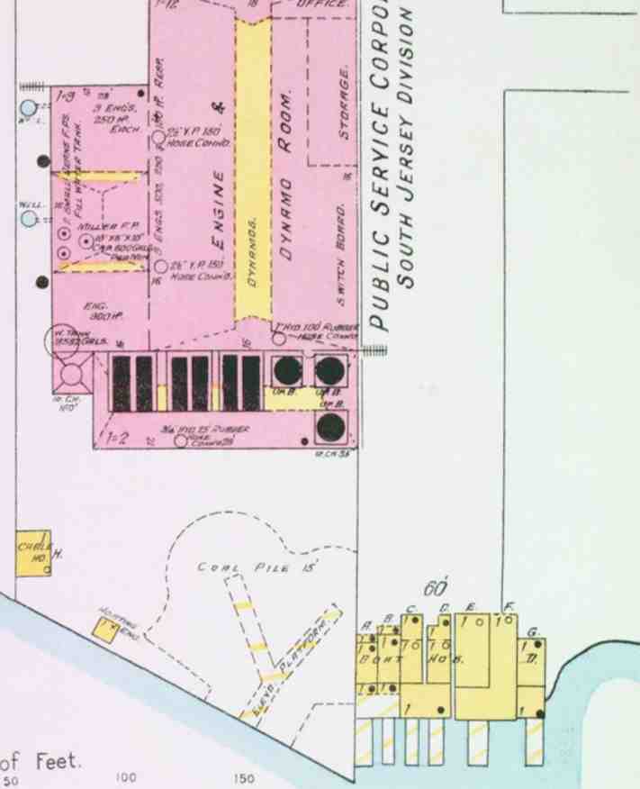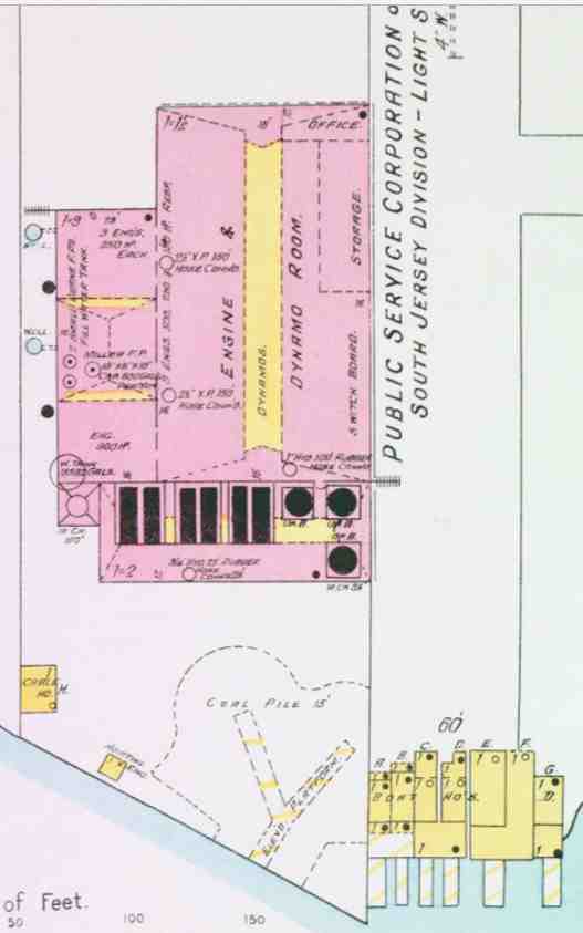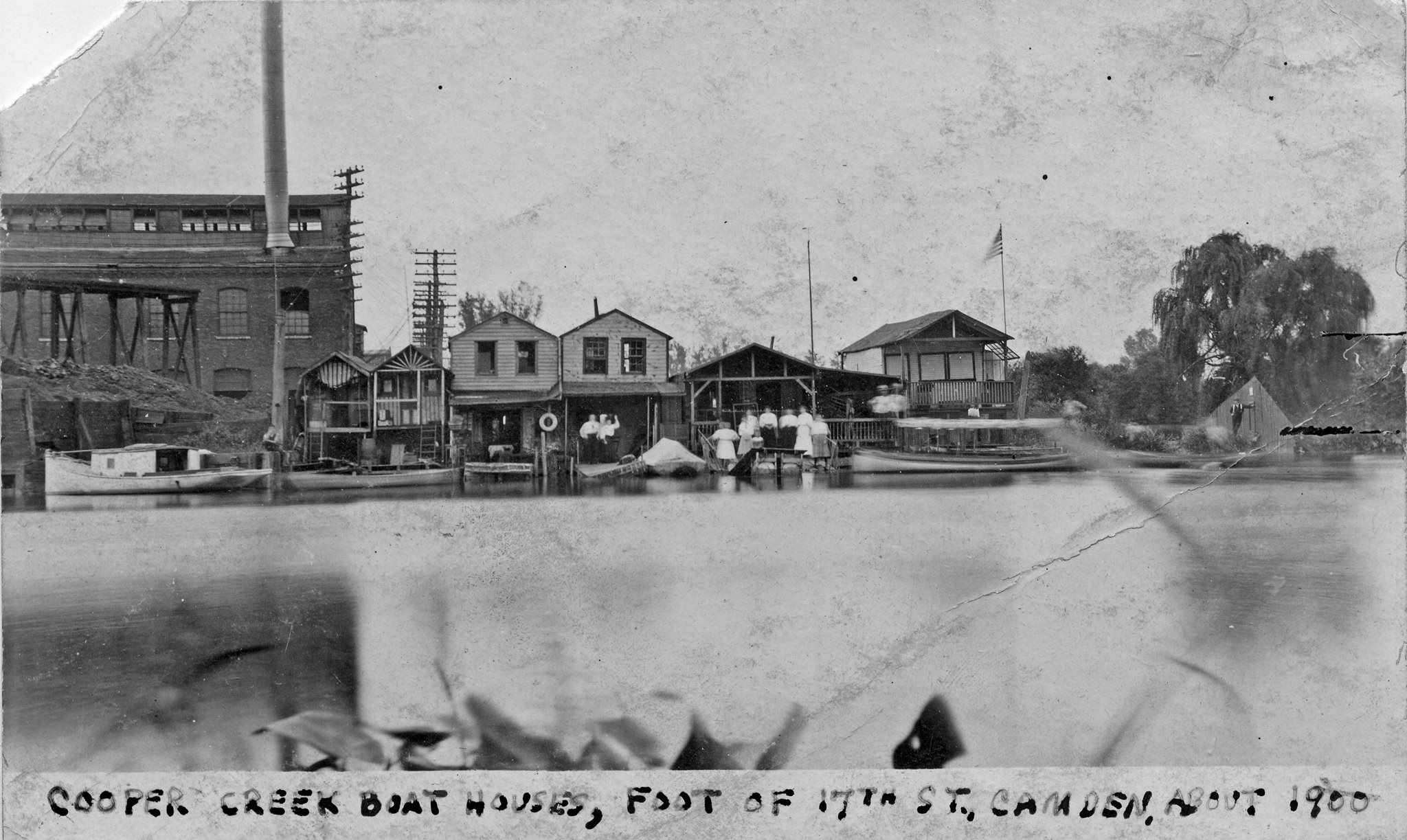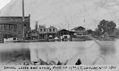 Creek Boat Houses, Foot of 17th Street, About 1900 The powerhouse on the left side of the image was built in 1898 by the Camden Lighting and Heating Company, which was acquired by the South Jersey Gas, Electric & Traction Company in 1900 and in urn by the Public Service Corporation in 1903. It was a relatively short-lived power generating station that Public Service closed and razed after establishing the first real power distribution network in 1914. |