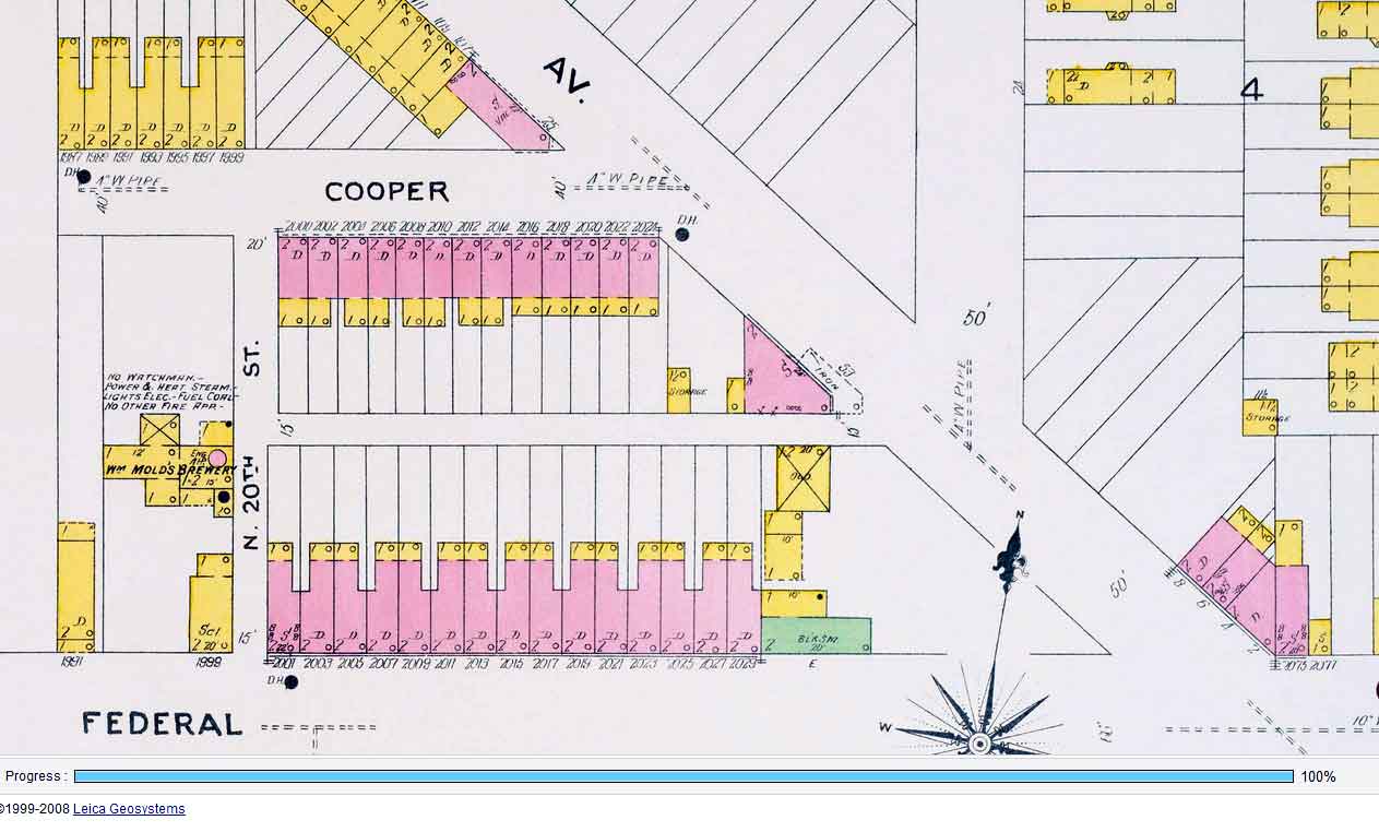 TWENTIETH STREET begins in what was originally called the Pavonia section of what is now considered Cramer Hill and ends in East Camden at Federal Street. The street had already been laid out by the time the 1887-1888 Camden City Directory was published. The street began at Harrison Avenue and runs south, across River Road to the Pavonia railroad switching yard, then from howell street to Federal Street, and across Federal street for one block. In 1954, with the development of the MacgUire Gardens publich housing project, another section of south 20th Street was created, which ran from Watson Street to Bank Street. Fourteen homes were given South 20th Street addresses. All were razed when McGuire Gardens was torn down and rebuilt in the 1990s. |