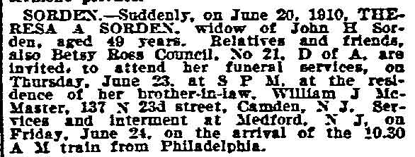 1910 Theresa A. Sorden Philadelphia Inquirer |