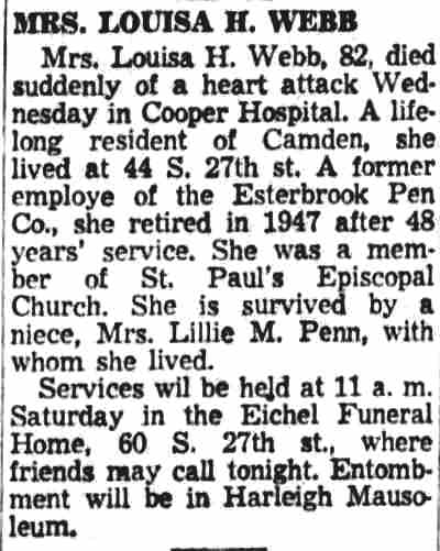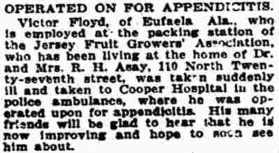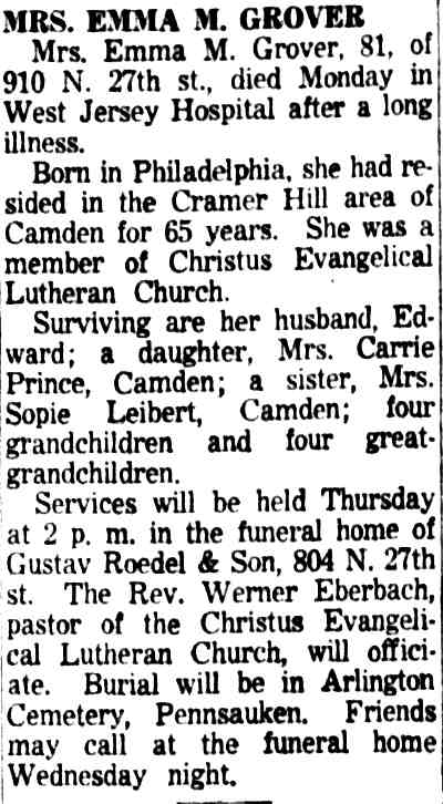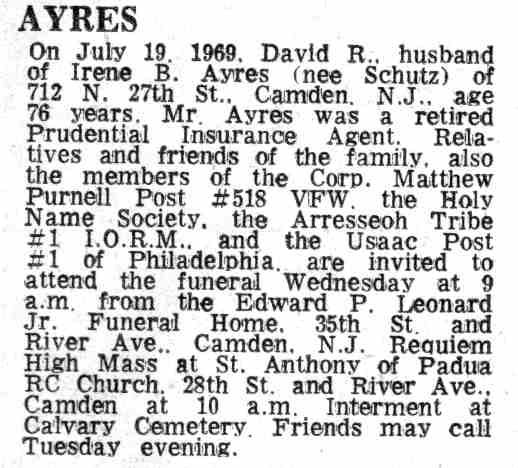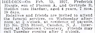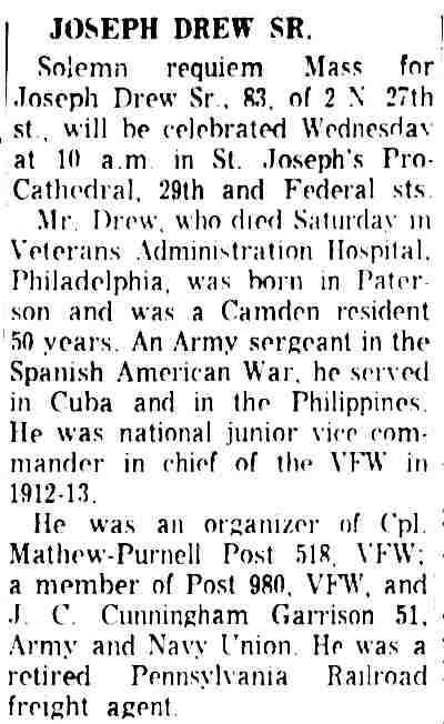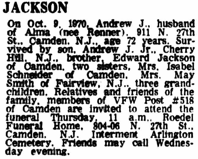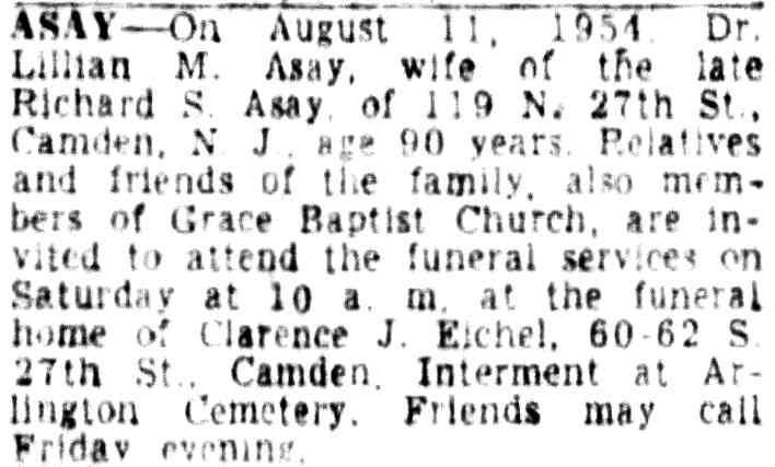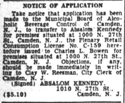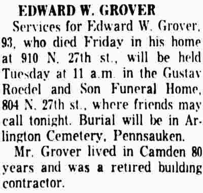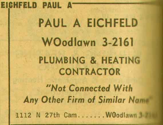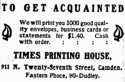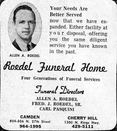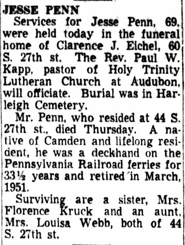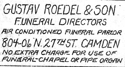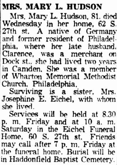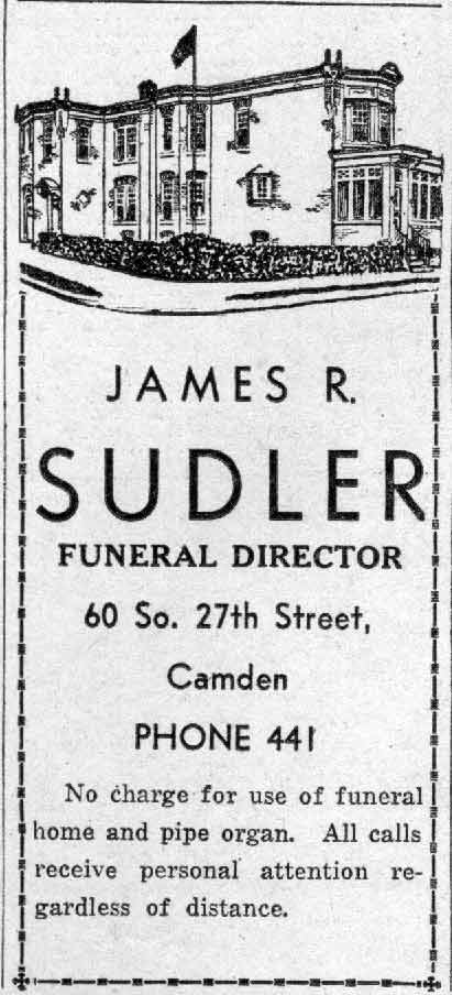 Maryland-born had come to Camden by 1920 when he was living at 2637 Westfield Avenue. During the 1920s he established a funeral home at 60 South 27th Street. During the 1930s James Sudler took on an apprentice, a boy who had grown up nearby, Clarence Eichel. In 1936 Clarence Eichel became a partner, and eventually took over the business after Mr. Sudler passed. The EIchel Funeral Home later moved to Pennsauken, and still is in business as of 2004.