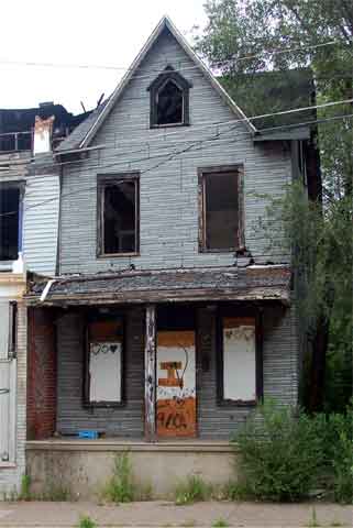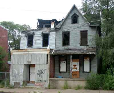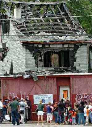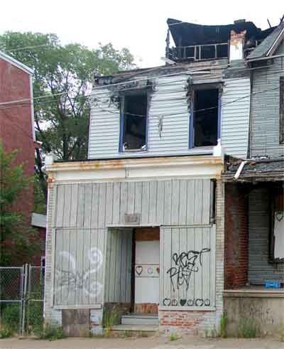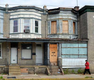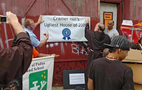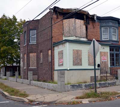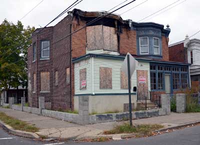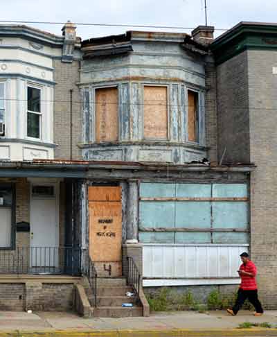 Spolar As about 40 people looked on, a Camden activist climbed the step at 923 N. 27th St. in the city's Cramer Hill section yesterday and tacked a bright-orange "Imminent Hazard" sign to the entrance of the abandoned shell. It wasn't easy. The unhinged door, propped against piles of debris inside the ruined home, nearly caved in at the touch. The house was the newly crowned "winner" of a contest devised by Camden Churches Organized for the People (CCOP), in which residents cast votes to decide which of 13 abandoned properties was the area's "ugliest house." The nonprofit group hopes the negative attention will spur Camden officials to become more aggressive about demolishing eyesores. "It's not just about getting publicity. It's about letting the city know we're serious about this problem," the Rev. Jud Weiksnar of St. Anthony of Padua Catholic Church said yesterday. The impetus for the project was a campaign begun by Weiksnar in March 2006 to have the city remove a deteriorating house next to the church's school on nearby River Road. More than three years later, Weiksnar estimated, he's still about 15 months away from his goal. Last month, Weiksnar and CCOP staff took one hour to come up with a baker's dozen houses they thought should be demolished. The group took photos and asked parishioners at St. Anthony, Hope Memorial Baptist Church, and St. Joseph's Pro-Cathedral to select the worst. The 125-year-old house at 923 N. 27th won, with 51 out of about 300 votes cast. The contest organizers requested that the property be demolished within 48 hours. The runner-up, a house erected in 1793 that served as a stop on the Underground Railroad, landed 35 votes. Had it won, the organizers planned to recommend that the historic structure be renovated rather than razed, said CCOP executive director Josh Chisholm. The 27th Street home was ravaged by fire last August and is a refuge for drug users, residents say. The graffiti-covered gray-and-red structure has a gaping hole in its second-floor exterior. The first floor is a heap of trash and rotten timber. According to city records, the property was purchased in 1980 for $7,000 and in 2004 had an assessed value of $28,000. According to the tax assessor's office, the owner is behind $56,000 in taxes and utilities. Aida Soriano, 26, moved next door in late June. She said she often looks out her bathroom window and sees people using drugs behind the house. Last month, she said, she left rat poison inside, in an effort to kill rodents that were creeping onto her property. Mayor Gwendolyn Faison, who attended yesterday's event, said she was disgusted by the conditions she saw and hoped to have the house demolished before she leaves office after November's election. "I am one mayor that's sick and tired of trash and abandoned houses," Faison said. "As soon as I leave here, I'm going to be on the phone." The problem with abandoned and hazardous properties in Camden runs deep. There are 199 abandoned homes in Cramer Hill - a neighborhood that accounts for about an eighth of the city's population - and 57 are in the same condition as yesterday's winner, said Manny Delgado, director of the Cramer Hill Community Development Corp. There are as many as 9,800 vacant buildings in Camden - 35 percent of the city's structures, according to Stephen Singer, head of CamConnect, a Camden research firm. Most are abandoned, he said. City Public Works Director Pat Keating said that demolishing the house on 27th Street was "doable," but "not feasible." "Unless they know how they're going to pay for it," he said. Keating has $26,000 at his disposal to complete emergency demolitions of homes on the city's imminent-hazard list. The 27th Street property, which he said would cost about $19,000 to raze, was added to the list in October 2008. The 28 homes now on the list will not be handled on a first-come, first-served basis, Keating said. When money arrives, he asks code enforcement officials what is in most severe need of demolition. During the last fiscal year, 36 homes were eliminated from the imminent-hazard list at a cost of roughly $667,000, he said Keating said that his department could receive up to $500,000 in federal block grant funding by the end of the month. Yesterday's contest winner might be taken down with that money, he said. The house is the first in a row of five abandoned properties on 27th Street near River Road. Keating said it would be more cost-effective to get rid of all five at once, though only yesterday's winner is on the high-priority list. In 2005, a revitalization report proposed knocking the entire row down and replacing it with commercial development. "The neighborhood isn't going to move forward until these homes are demolished," Delgado said. Following the event, which concluded with the cutting of a cake decorated with the likeness of the dilapidated winner, a bulldozer happened to drive down the street. On the sidewalk, members of the throng - many of whom carried signs shaped like bulldozers - shouted in excitement, hoping that help had arrived. " Aqui! " yelled Martha Checo, a 32-year-old member of St. Anthony's. The driver smiled, but shook his head and continued on. |