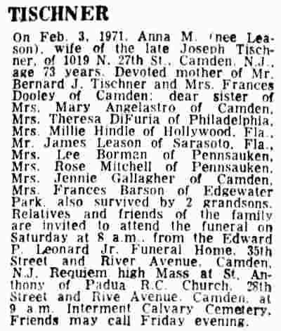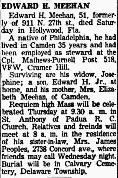 1915-1960s Stephen Walter & Family Stephen L. & Bertha Walter Joseph F. Walter - Theodore W. Walter Steven L. Walter - Thomas E. Walter Agnes R. Walter - Rose V. Walter Camden Courier-Post |