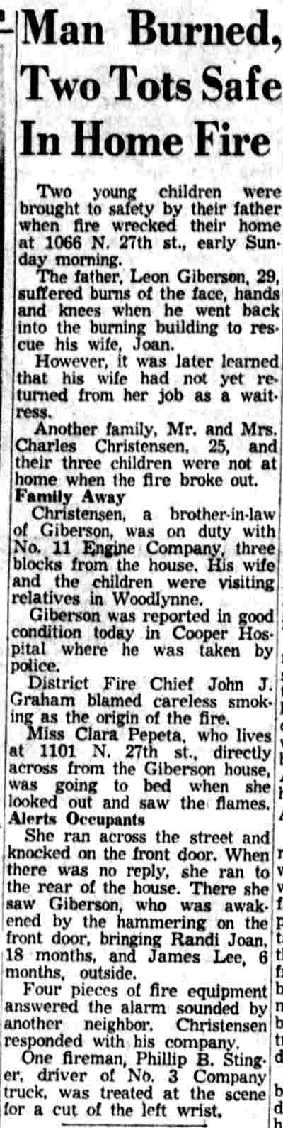 late 1960s-1987 …the late 1960s when my parents sold the 1201 house and moved down the block to 1235-1237 N. 27th Street, which was also owned by Ruth Cooperman. He also rehabbed that property into a one-family home and rental units. After my Dad died in 1987, we sold the property and I learned later that it burned down shortly after we sold it. Leah