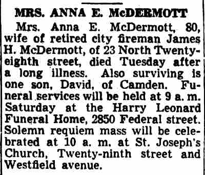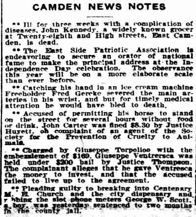 28th and Mickle were my Grandparents. In the late 1940s my grandfather worked for the owner of the store and lived in the middle of the block. Later he bought the store. He was awarded Breyer's bonus for selling the most loose ice cream. They actually placed freezers for him in the basement at their cost to sell more. He would stay open until the last person was served. 10 cents a dip. They had nasty names for him like "bug foot Charlie" and "Thumb Print Charlie" from attempting to keep the ice cream on the cone. For a pint you got a gallon and for a dine you got almost a pint on a cone. Even on Christmas he felt obligated to keep the store open for the neighbors. My grandmother came over for a couple of hours and then my grandfather came over to keep the store open. He sold the store and the new owner change to another brand, raise comes to 15 cents and lost the store. I remember my dad (Charles Kocher Jr.) laying new asphalt tiles along the candy cases from the long line. Soda was in water and you had to know your caps! When it was time for me to attend middle school, the Board of Education moved Junior High classes to Davis for me. I had been looking forward to eating lunch at my Pops. He moved to Hillside Avenue in later years and kept all of Saint Joe's carnival equipment in his garage and that paid his yearly taxes. Quite a business man! My dad was a police lieutenant and decided not to buy the store. Charles Kocher III |