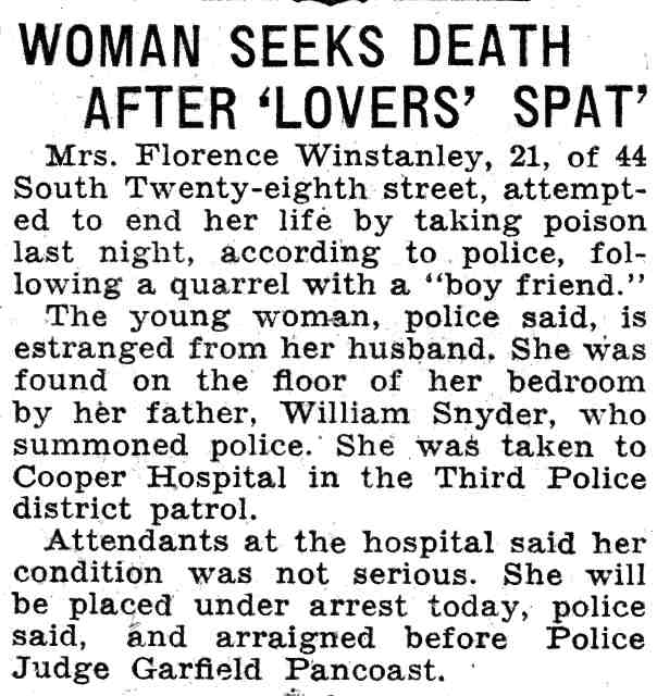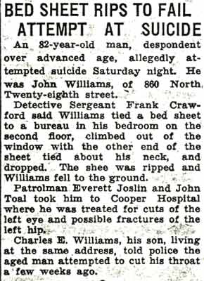 TWO MEN ARRESTED AFTER AUTO CRASH Basil P. Cook, 44, of 449 North Fifth Street, was arrested on charges of assault and battery and threat to kill, and James Fenton, 32, of 834 North Sixth street, was held for reckless driving and disorderly conduct last night on complaint of C. N. Morrow, of 7 North Twenty-eighth Street, following an automobile accident. They will be arraigned in police court today. Cook and Fenton were booked as "drunk" by Sergeant Stiles Whittaker, though Morrow declined to press such charges against them. Fenton was released later on $40 security. Morrow was driving west on Federal Street and Fenton, in whose car Cook was passenger, was proceeding east. Fenton's car turned left into Leonard Avenue. Morrow charged that Fenton then backed into Morrow's car. Morrow got out of his car and an argument ensued. Morrow is alleged to have accused Cook and Fenton of being drunk When Morrow went into a nearby store to telephone for police, Cook is alleged to have followed him, grabbed him by the throat and threatened to kill him. Morrow then struck Cook and broke his hold. When the Third district police patrol arrived, Cook was standing in the street. He was arrested by Patrolman Elwood Humphreys. Fenton ran into the store and refused to leave. He was dragged from the place by Patrolman Joseph Shreeves. |