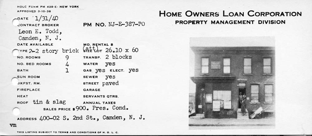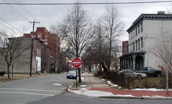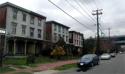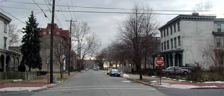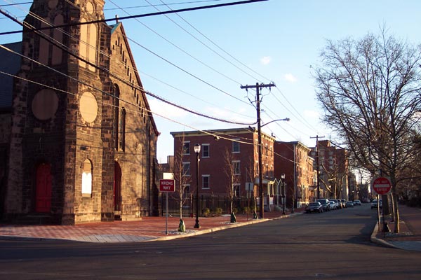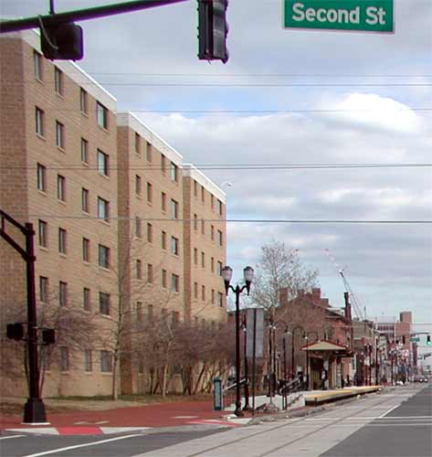 SECOND STREET runs north and south, between Front and Third Streets, parallel to the Delaware River as far south as Mechanic Street. It originally ran virtually uninterrupted, but in the very early 1970s in several blocks on the east side of North 2nd Street below Mickle Street were taken, the buildings razed, and two public housing projects were built, the Royal Court townhomes and the Mickle Tower senior citizens apartment building. |