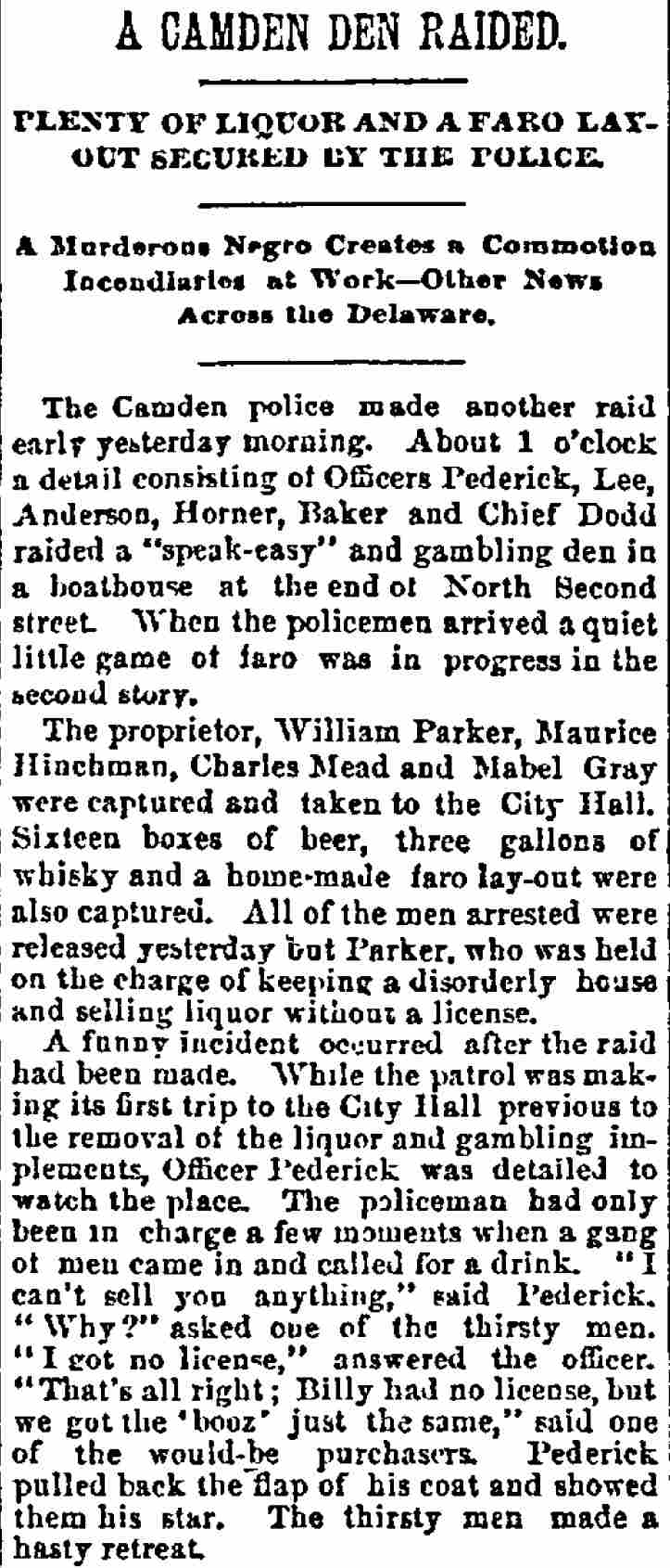 1890 speakeasy" in a boathouse Philadelphia Inquirer Samuel