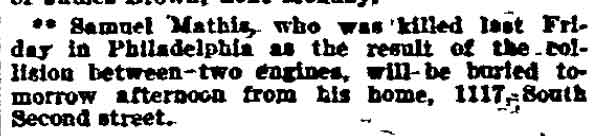 1917 James Ford Philadelphia Inquirer Click on Image for Complete Article |