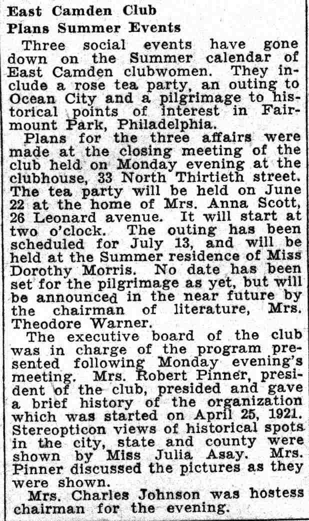 1931-1938 Camden Courier-Post Mrs. Howard EBy |