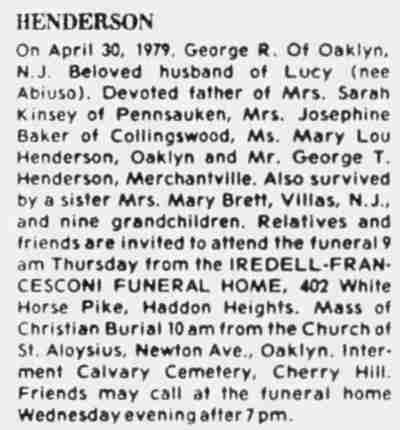 I was born in 1951 and brought home to 139 North 32nd Street. My parents were William Joseph and Elizabeth Mae (Reeves) Petris. These were all very happy years for me and my sister Sheree Joy Petris (married name Romesburg) who was born in 1954. These were happy years because all of our family lived in Camden. My Dad's family was from South Camden and my Mother's family was from East Camden. My Dad was terrific at carpentry and for several years in their spare time, he rebuilt the entire inside of 139. We had indirect lighting in dining room which shone pink from the outside and they made a faux pink marble fireplace in the living room. Strange, but I guess they were into pink. My Grandparents, George and Ruth Reeves lived at 3173 Merriel Avenue and I could see their house from my back bedroom window. My best friend Janice Olnhausen lived next door at 3171 Merriel Avenue with her parents Emil and Betty Olnhausen. My Great Grandparents, William and Eva Roles (parents of Ruth Roles Reeves) built Roles Court Apartments on North 34th Street and Rosedale Avenue, they lived there and ran the apartments until both passed away. The apartments then passed to George and Ruth Reeves who later sold the property. Most of our family the Petris's, Reeves, Roles, and Kellys were brought up and lived and had happy times at Roles Court Apartments. My parents lived there from 1947 (the year of their marriage) to 1950 until they purchased 139 North 32nd Street. Our playground were those streets, the back alleys and of course Dudley Grange Park, where they had a ball game going every night during the summer and then there were the swings and slides. My Grandfather George "Rick" Reeves along with his friends George Kissinger, Inky Workings and Harry Hoffman all played baseball there. My Dad Bill Petris also played at one time or other. My Mother Betty Mae lived in Westfield Acres from 1938 to 1941 or 1942 on a third floor apartment with her sister Ruthie and baby brother George "Richard" Reeves until they moved to 3173 Merriel Avenue. I went to Henry H. Davis Elementary School from kindergarten (Mrs. McCarroll), 1st grade (Mrs. Braun) 2nd grade (Mrs. Brown), third grade (Mrs. Elliott), fourth grade (Miss Williams), fifth grade (Miss Quinn) and 6th grade (Miss Costello). Mr. Showalter became the principal at some point. I think he had come from Cramer School. Everyone was friendly, we took the bus everywhere but mostly to 27th Street to go to the M&H to get ice cream, Kotlikoff's to get clothes and the 5 & 10 to look at Barbies. My Mother and my Aunt Carol Kelly would push coaches with their children into "town" as they called it on nice days. My sister and I would walk to Grace Baptist Church on Sundays, where most of my Mother's family attended (the Reeves side). William Reeves owned the house on Cramer Street across from the church and sided up against the bank parking lot. Later the house was lived in by my Aunt Ida and Uncle Sam. Ida was George Reeves' sister. William Reeves, my great grandfather was the fire chief at the firehouse. During the Fourth of July celebrations, every year, Dudley Grange Park would set off a wonderful fireworks display. I don't remember if it was big in relation to displays now. It was huge, and beautiful and implanted in my memories so much so that I have to rush out and see fireworks somewhere on the 4th. Unfortunately, someone was killed in the 1950's as I believe one of the fireworks went into the crowd. After that, the fireworks stopped at Dudley Grange to my recollection. Harry's Grocery store was on the corner of North 32nd Street and Westfield Avenue. On the other corner was Sy's Cleaners. The Esso station was on the other side of the street facing North 32nd. Frank's soda fountain and candy shop was on North 34th and Westfield on the way to school. There was another candy store across from Davis on the corner. The playground at Davis was the scene of many Halloween parades when we had to march around the school for our parents to see back in the 1950's. The playground was wonderful, life was fun and easy. I had wonderful holidays and many happy memories of 139, 3173 and Roles Court Apartments and the neighborhood in general. The library was great. I would go once every two weeks and take out as many books as I could read. There was roller skating, bike riding, the kid who sold water ice and snowballs in his wagon, the milk truck, the ice truck, the clothes prop man and people who were homeless that would knock on your door to ask for a bowl of soup. You did not say no and always gave them something to eat and you never locked your doors back then. You didn't have to be afraid of anyone. It was a close neighborhood and everyone knew who you were from street to street and neighbors looked out for one another. My parents sold 139 North 32nd Street around 1962 to move to Cherry Hill after 6th grade. My Grandparents lived at 3173 from about 1941 to approximately 1974 when they past on and my Uncle Richard Reeves inherited the house and then sold it to move near Gibbstown, NJ. My Aunt Ruth Reeves Feairheller moved out of 3171 when she got married in 1957 and at some point moved to a street that paralleled Route 130 near Pennsauken and the Penn Fruit. She may have also lived on Carman Street at one time. There is so much more and I could go on all day but I won't. It was a lovely, uncomplicated, innocent and wonderfully happy time for all of the family. Now family is scattered all around the U.S. The "olden" days were great fun. Jill