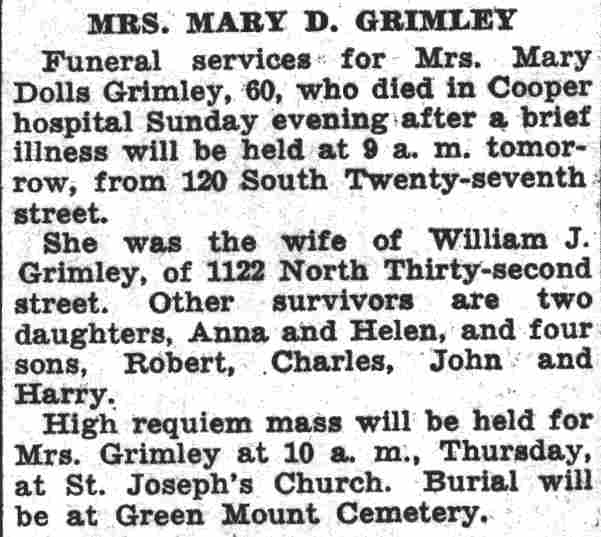 1237-1239 North 32nd Street 1905-1914 Philadelphia Inquirer |