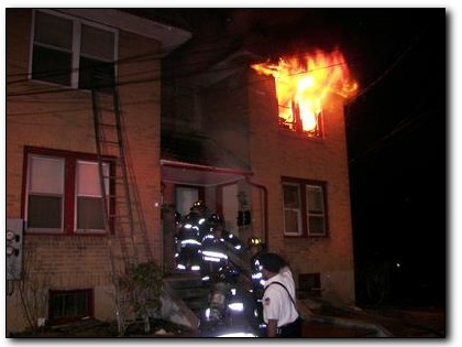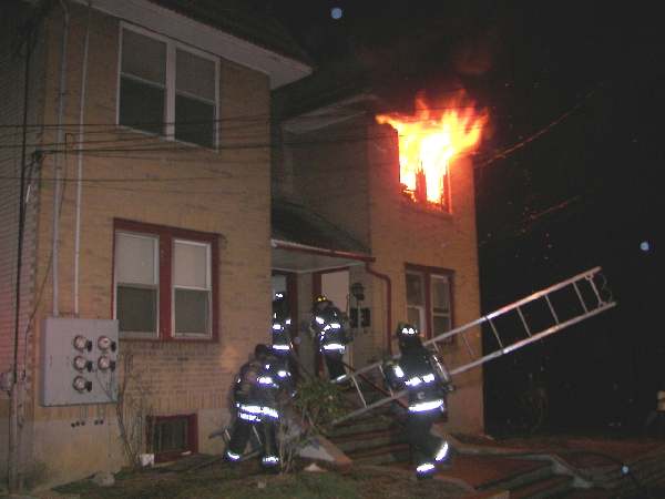 blaze was reported about 8:42 p.m. at 139 N. 36 St., an official said. Photos by Steve Skipton Battalion 2 (Lewiston) arrived to find a 2 story brick twin O/M/D with heavy fire showing from the 2nd floor, placed all hands in service, no injuries were reported. |