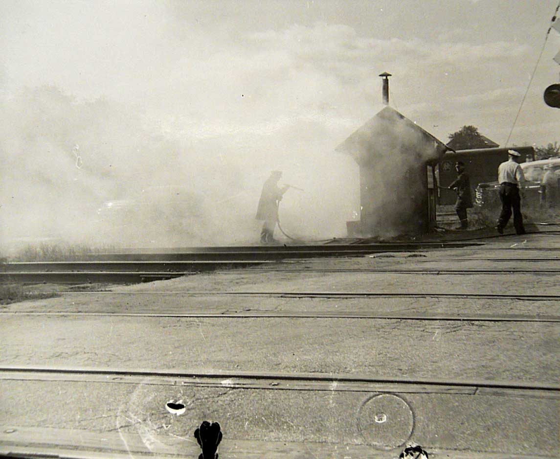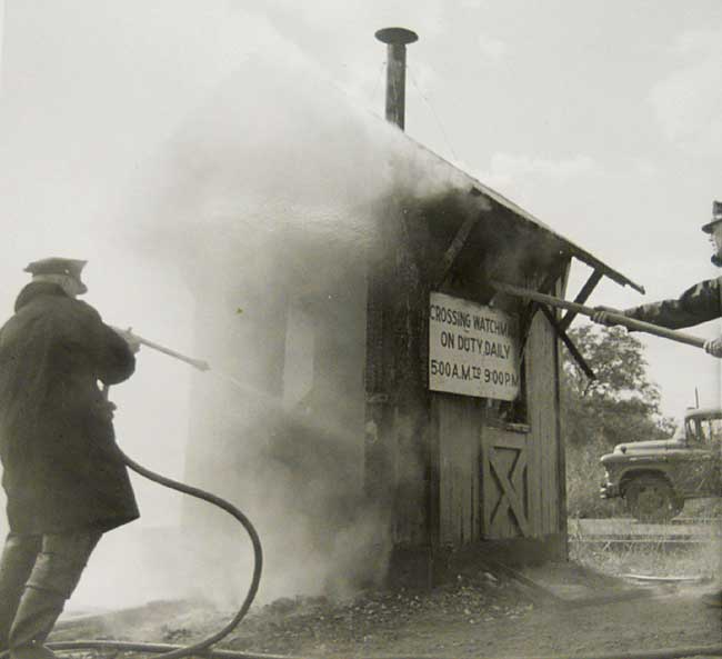 Fire Department at the railroad crossing guard shack sometime after 1956 Photos by Bob Bartosz |