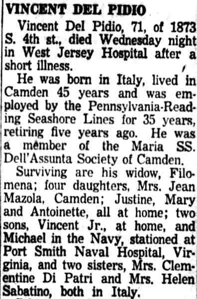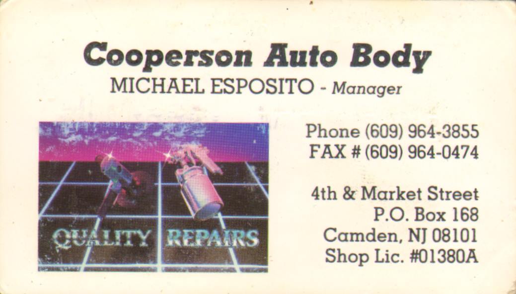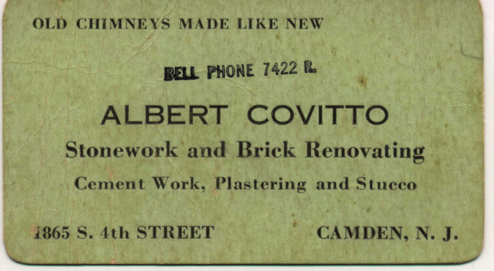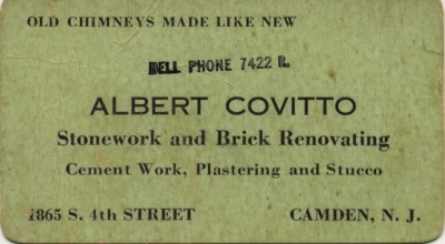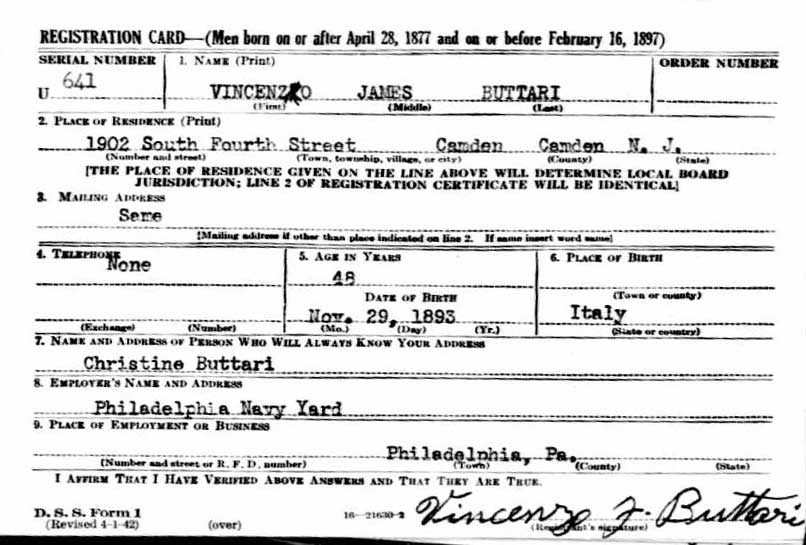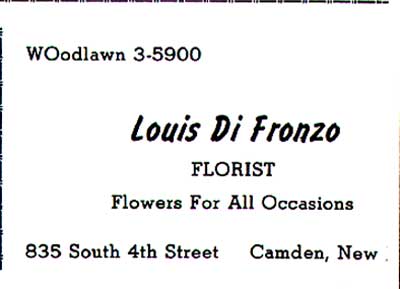 I was born and raised in Camden. My name is Vincenzo Buttari III. I was born at 2025 Fillmore Street then moved to 1902 South 4th Street. I remember playing as a kid in the old brewery. I still to this day look for all memorabilia. I'm related to the cop [Clifford] Del Rossi. People ask me if I'm from South Philly because of the way I talk. I tell them I used to chew those guys up and spit them out, I'm from SOUTH CAMDEN. My wife thinks I'm nuts. I tell her that is who I am. Vince Buttari |
