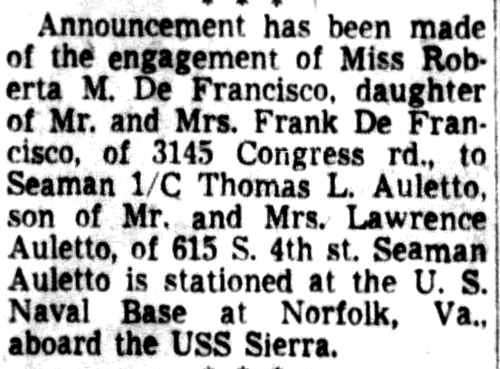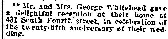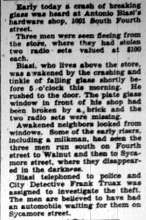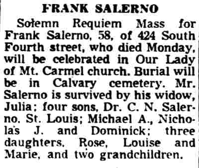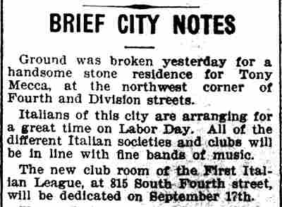 Ralph Bantivoglio as elected president of the Eighth Ward Beneficial Association at its annual meeting held, at 1921 South Fourth Street Monday night. Other officers elected were Al Konopka, vice president; John Downes, recording secretary; Frank Di Giacomo, financial secretary and Henry Konopka, treasurer. Final arrangements were made for the association's annual ball and show February 25 to which Mayor George E. Brunner, Police Judge Gene R. Mariano and other notable have been invited. Al Di Giacomo was named chairman and Konopka treasurer, of the ball committee, Jimmy De Muro and his Country Club Orchestra have been engaged. |
