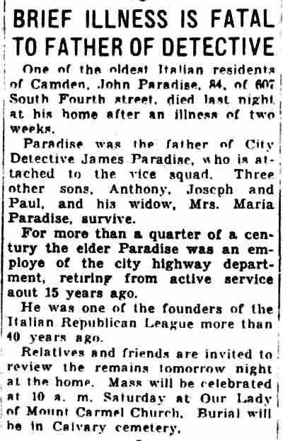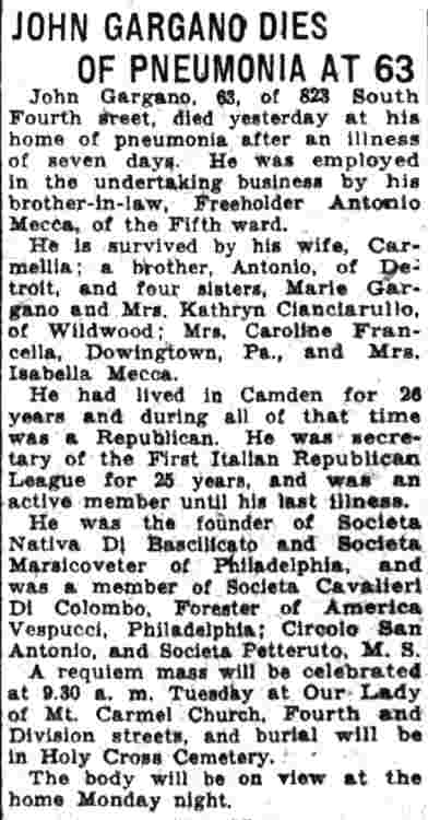 1913 Domenico Cristofaro Philadelphia Inquirer Fiore