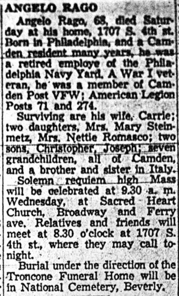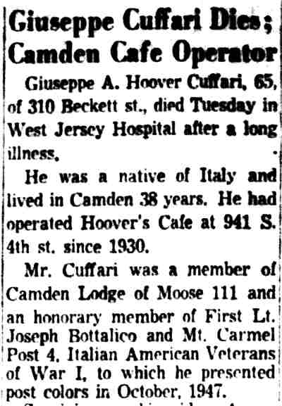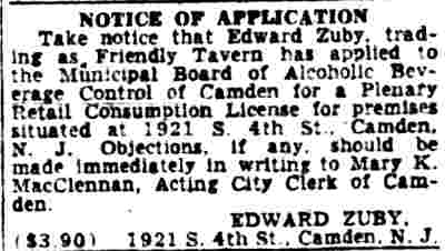 1918-1943 Wlaclaw (Walter) Konopka Cafe 1947-1949 Camden Courier-Post |