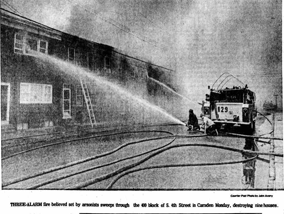2 Camden families displaced by blaze CAMDEN Two families were displaced after a two-alarm fire ripped through a home Monday in Camden. Police and fire officials responded to the blaze at 915 N. 4th St. about 5:25 p.m., police said. The fire started in a garage in the back of the home, police spokeswoman Teresa Sicard Archambeault said. Residents of the home and of an adjacent house were displaced, Archambeault said. The cause of the fire is under investigation. No injuries were reported. |