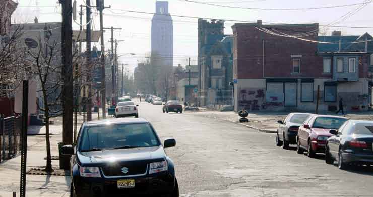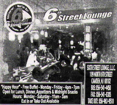 SIXTH STREET runs with few interruptions from the Delaware River to Morgan Street, virtually the length of the city, from North Camden south almost all the way to Gloucester City. |