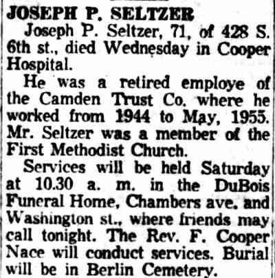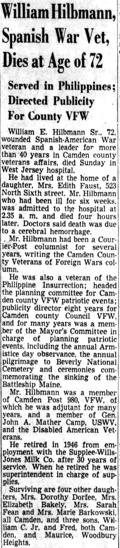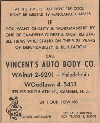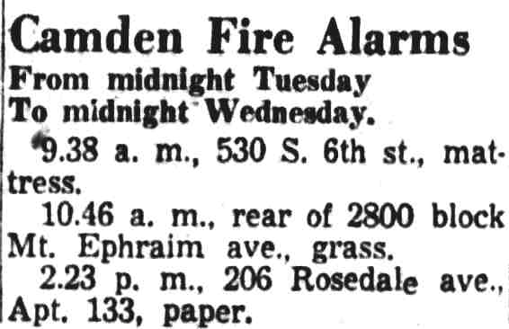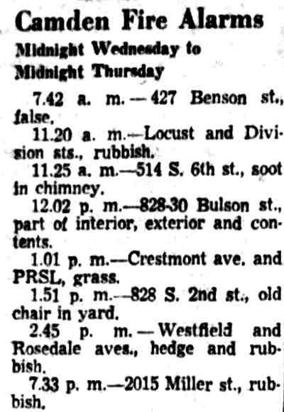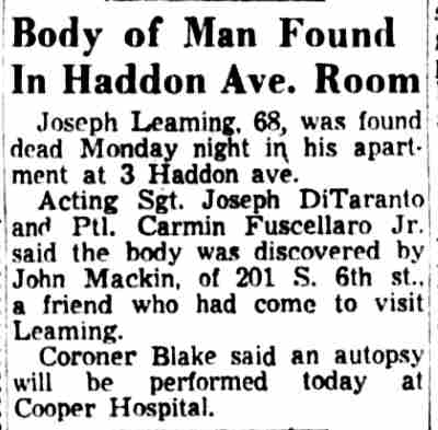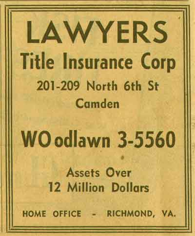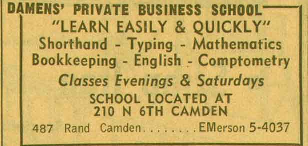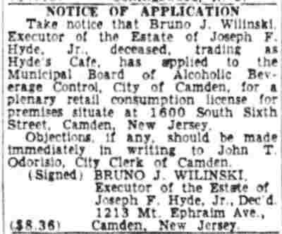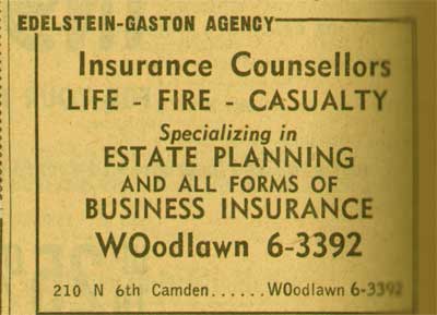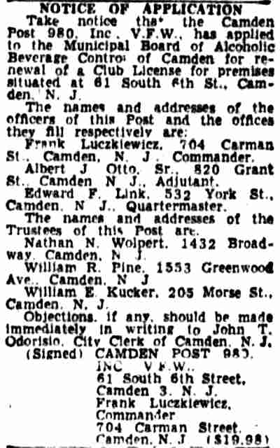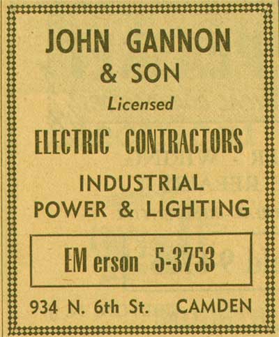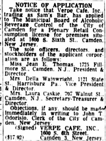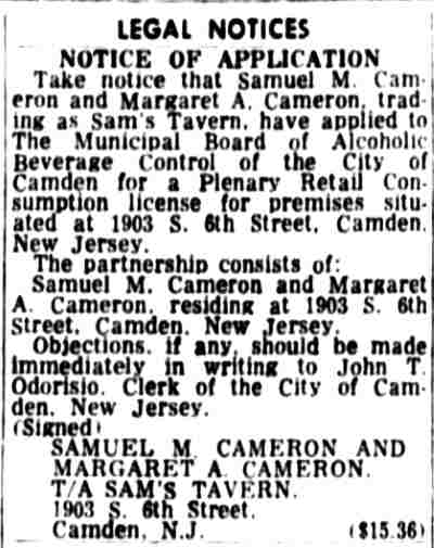 1951-1963 Camden Courier-Post Samuel M. Cameron 1963-1964 Gays Tavern Pedro J.