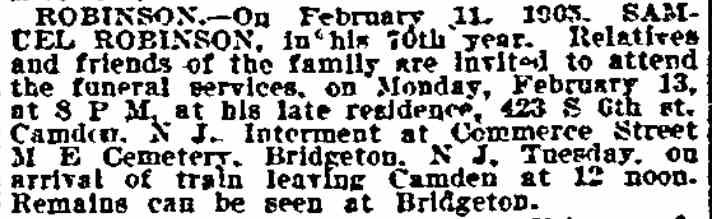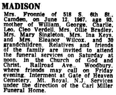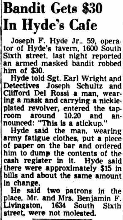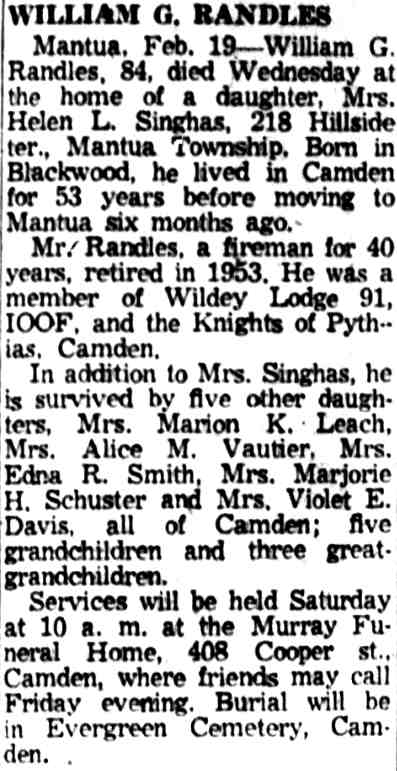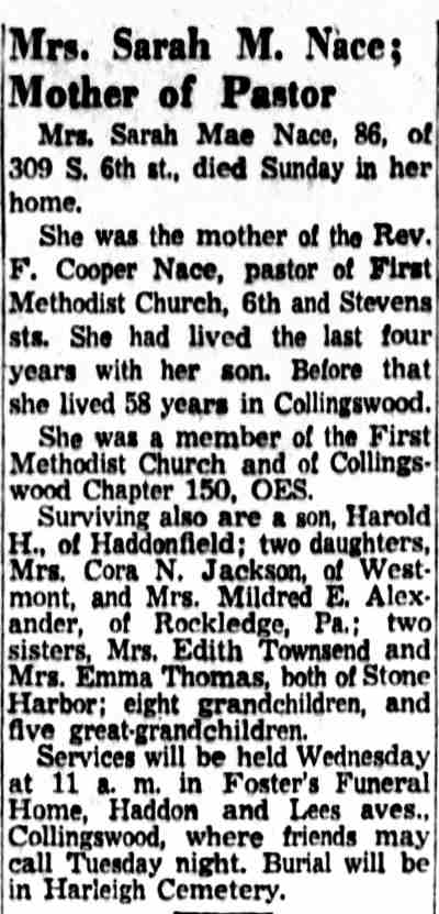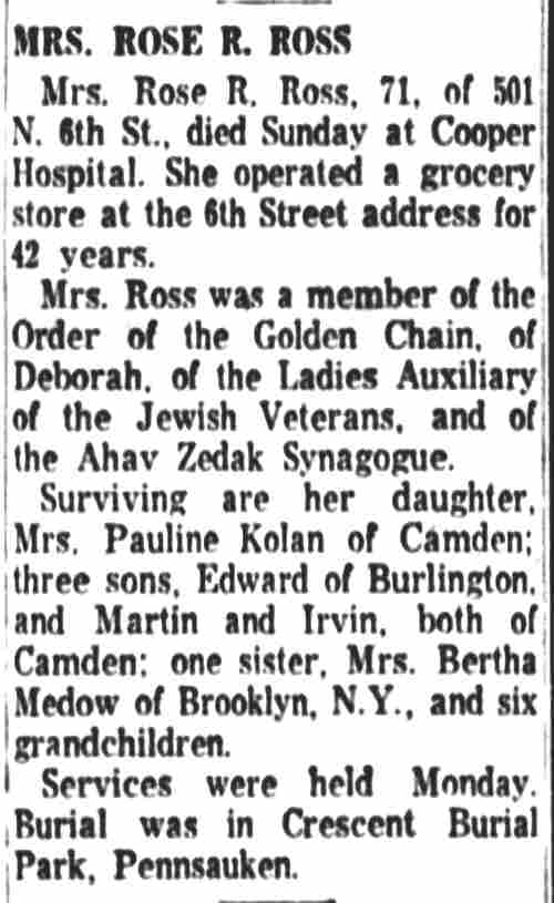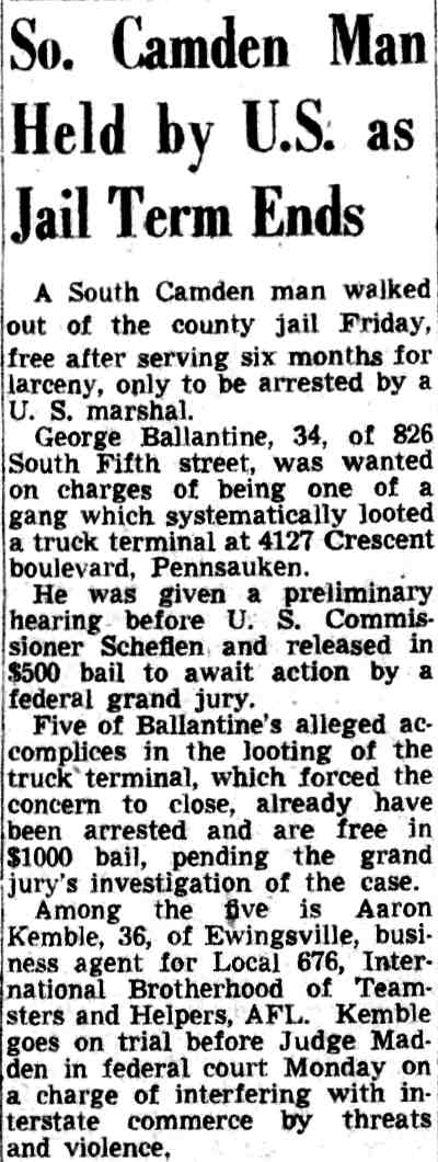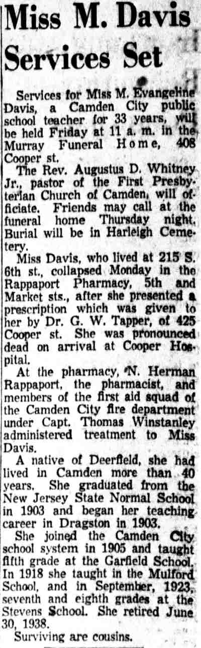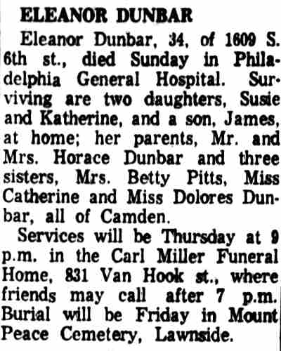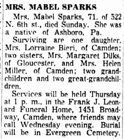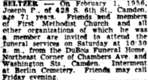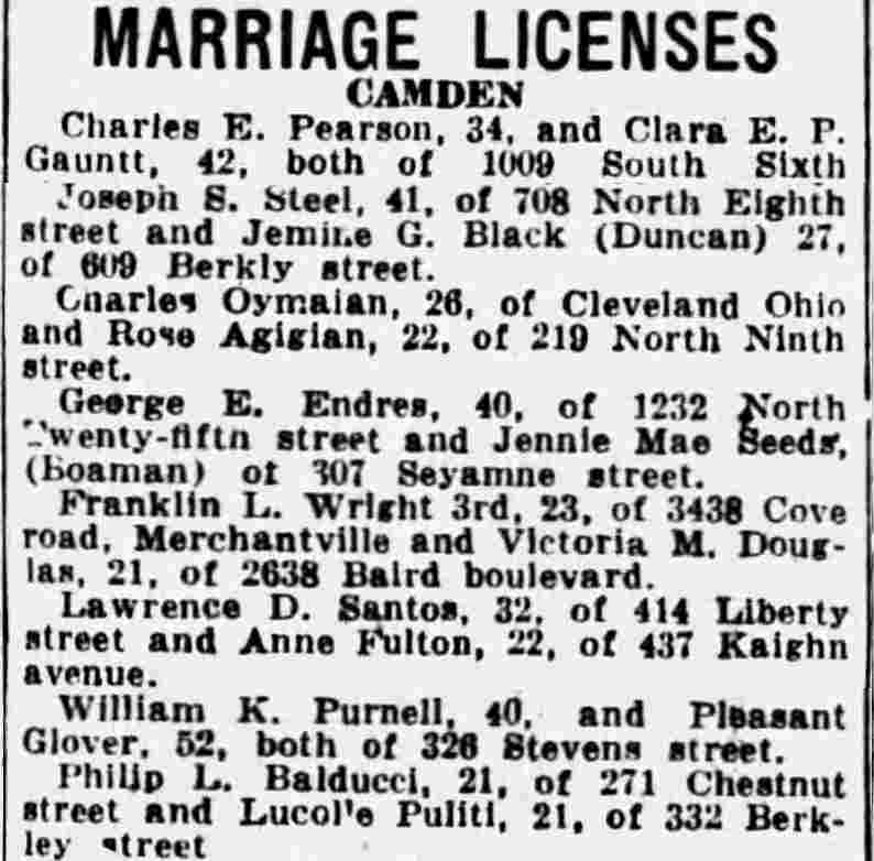 1951-1963 Camden Courier-Post Samuel M. Cameron 1963-1964 Gays Tavern Pedro J.