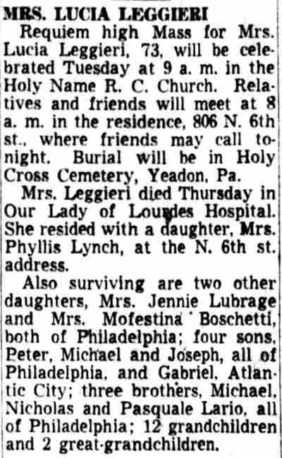 1916-1918 Philadelphia Inquirer Mrs. Estava