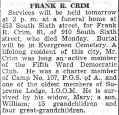 1823 South 6th Street 1920-1947 Edward Trotman |