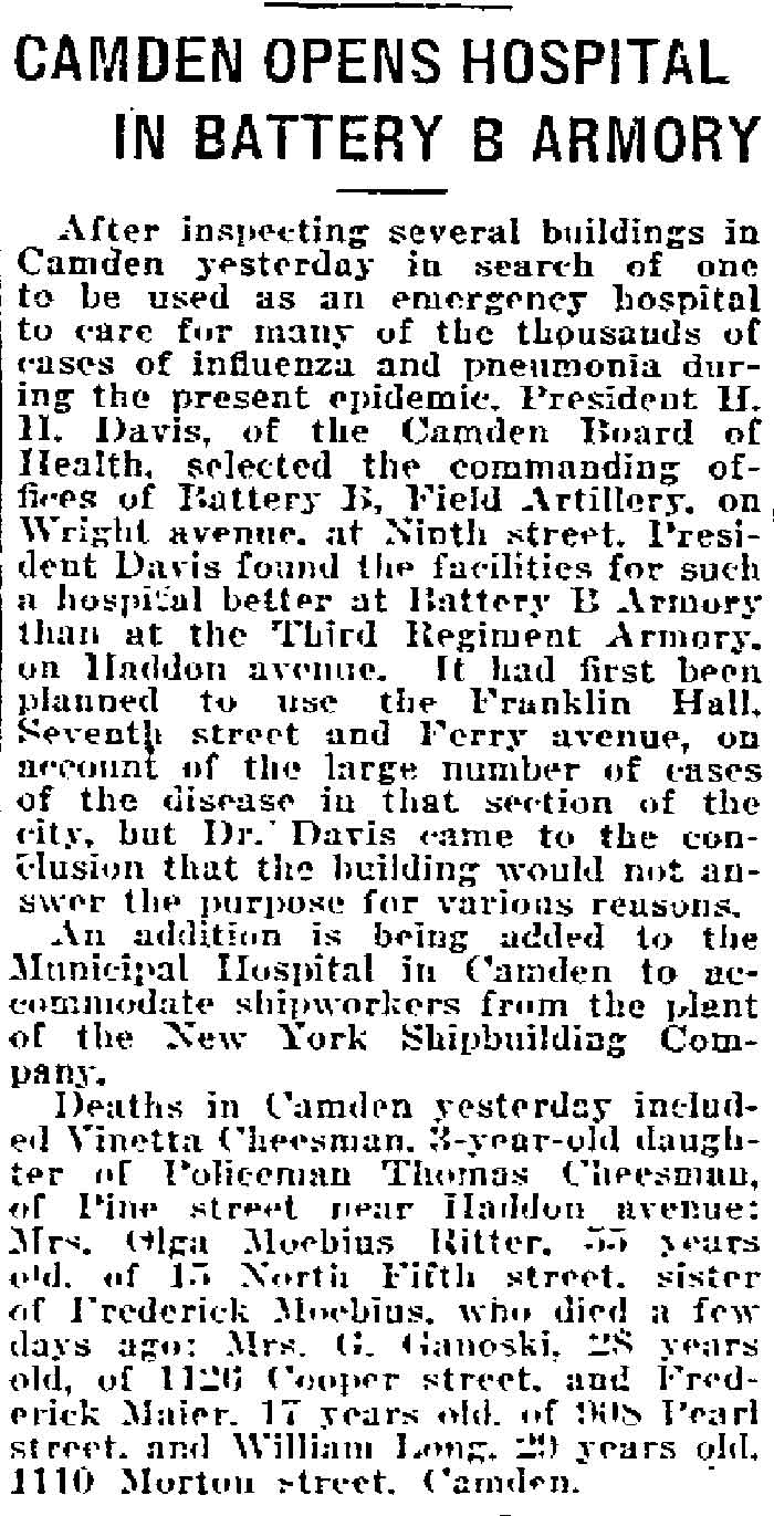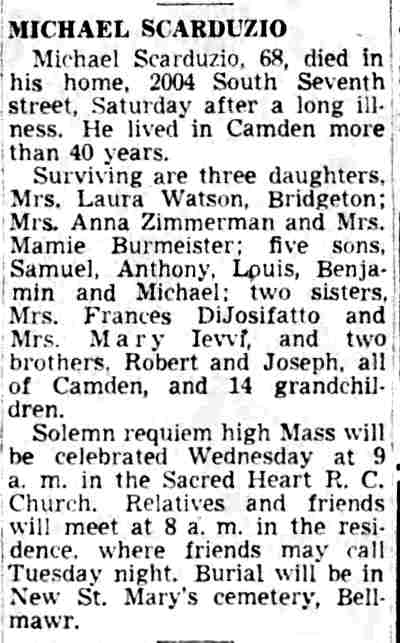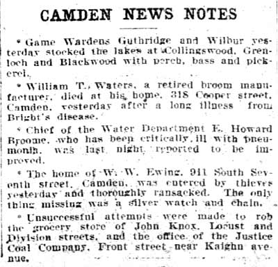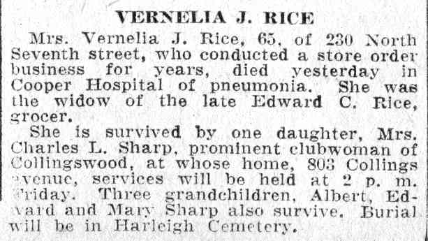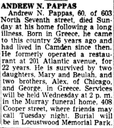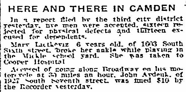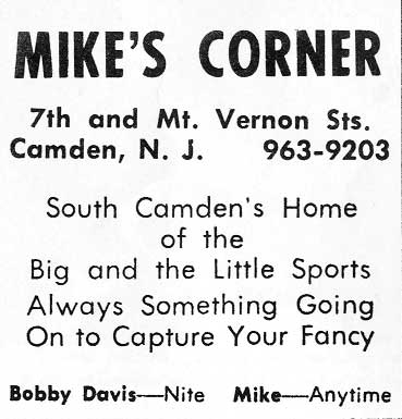I was a resident of North 7th Street probably for the first 15 years of my life. I lived at 905 North 7th right next door to Sam Payne. He often would take me to his print shop on Elm Street where his sister lived upstairs above the shop. At 901 North 7th was Charles Barbarito's Barbershop where I got my haircuts. Next at 903 was Papazian's tailor shop and dry cleaner. 909 was the John Ward family who worked on the Pennsylvania-Reading Seashore line Railroad with his son Jack. Next at 911 was the Bucchiero Family who moved to Berlin, NJ around 1960 and the house was sold to a Miller family. Next was the home of an undertaker whose name I can't recall, and the last house was the Gianetti family. Then came Bailey Street where the house was owned by a Mr. and Mrs. Bailey who was a collector of clocks. Mrs. Bailey use to invite me in for cookies when dozens of clocks would all start chiming the hour at the same time. On the opposite side of york street on 7th was Sam Fritz's corner grocery store. Molotsky's Candy store was on another corner and the Matlack family had the last corner at 7th and York. Matlack had a small store at the rear of the house facing York which he opened only in late November till Christmas to sell Christmas trees, lights and ornaments. I use to hang out at Pyne Poynt park all the time and was probably the only kid in the neighborhood who got along with the park guard and caretaker Otis Smith. His wife (Sophie) was an invalid and he would ask me to stay with her while he made his rounds when the park closed at night. Afterward Mr. Smith would get his car and the three of us would go to Marbett's on Admiral Wilson Boulevard for hamburgers then he would drop me off at home. My name is Richard Mori, I am the owner of the Somerdale Bar and Grille on White Horse Pike in Somerdale. Stop in someday and you might meet quite a few past residents of North Camden. I recall many of the things about living there, the stores, the circus pitching tent just across the State Street Bridge next to the city dump, and just across State Street my Grandfather was one of the persons that had a 'Victory Garden' where he grew vegetables for the family. He had a small shack on the "farm" where he could escape for a few hours from my Grandmother. Richard