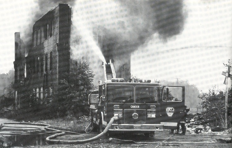 By CLINT RILEY Courier-Post Staff CAMDEN - Five people escaped from a string of burning row houses in North Camden Tuesday morning, moments before intense smoke and flames' erupted into the street. A young woman, who inhaled large amounts of smoke and suffered minor facial bums while fleeing from 905 North 7th Street, was rushed to the trauma unit at Cooper Hospital/University Medical Center, Camden. America Alicea, 23, no known address, was in critical condition in the trauma unit Tuesday, a hospital spokeswoman said. Two young men she was visiting in the row house where the fire started shortly after 10 a.m. escaped uninjured. Authorities said they had not positively identified the men. ' There was water, but no electric or gas service to the row house, fire officials said. Authorities suspect the men were saying there without the owner's permission after the landlord closed the residence recently. The Camden County Fire Marshal's Office and city police continue to investigate what caused the fire. Authorities said Tuesday's blaze easily could have been worse. "It spread real fast. A matter of seconds," said Virginia Danks, a neighbor who saw the fire when she glanced out the front door. City police Sgt. Anthony Martino happened to be in the neighborhood just as the two-alarm blaze began to rage. He raced to alert people inside 905, 907, 909 and 911 North 7th Street. Raul and Isabel Rodriguez "answered his calls and emerged from inside a brick row house two doors away from where the fire began. "I was sleeping. Somebody walked on the porch and woke me," said Rodriguez, 51, of 909 North 7th Street. The three people inside 905 North 7th Street escaped on their own, authorities said. "We were lucky," said Martino, who was aided by partner Patrol-man Mike Hughes. "Everybody was lucky." Firefighters from two city battalions, equipped with aerial trucks, controlled the fire before flames spread beyond the Rodriguezes' front porch. Two adjoining row houses at 905 and 907 North 7th Street. were gutted by fire. Only 905 and 909 North 7th were occupied. One firefighter was treated at Cooper for a minor puncture wound to his foot. He sustained the injury when he stepped on a sharp object while battling the blaze. |