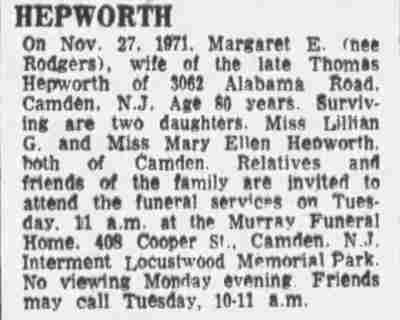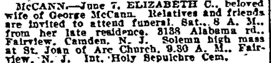 3161 Alabama Road 1931 Mrs. Annie Peiper Camden Courier-Post Emilie Peiper |