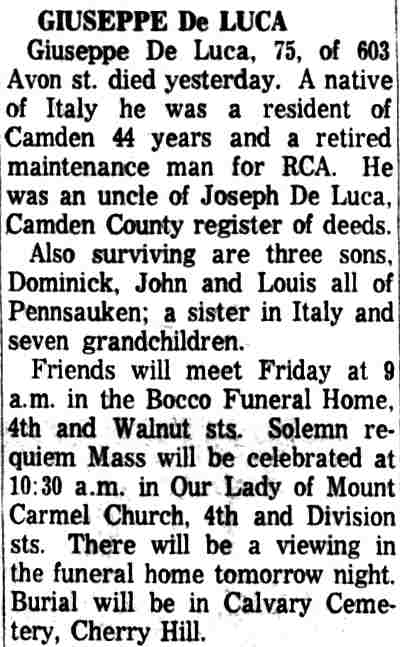 603 Avon Street 1932 Giuseppe Pirelli Camden Courier-Post Peter DiVito |