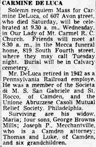 1947-1960 Carmine DeLuca & Faily Carmine & Maria DeLuca Joseph DeLuca George DeLuca Thomas DeLuca Luke DeLuca |