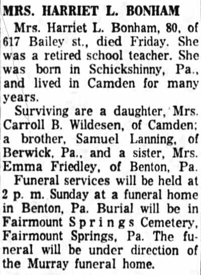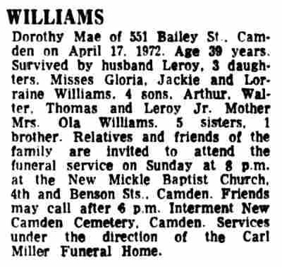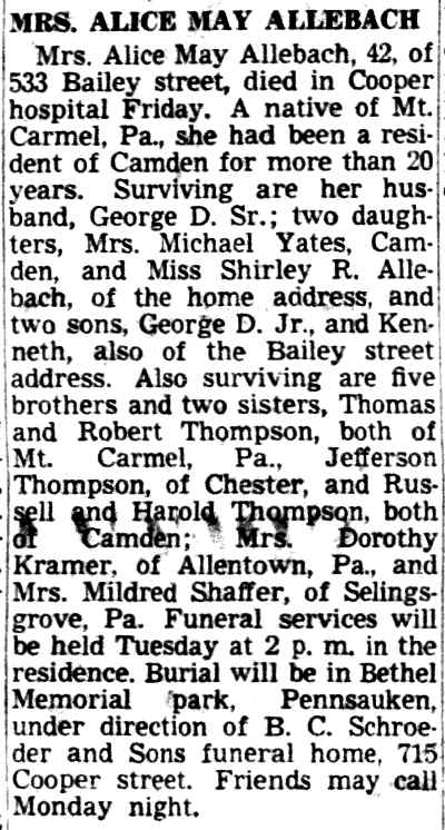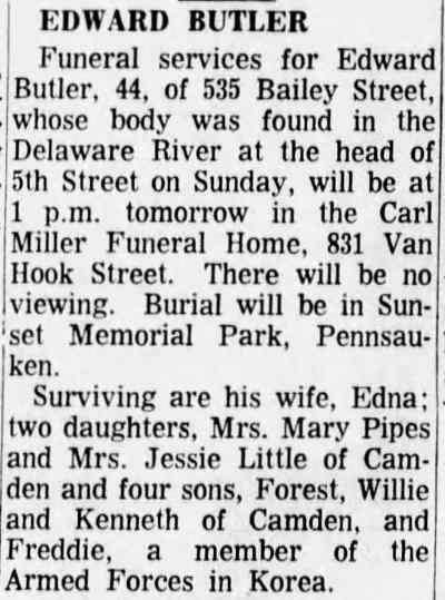 1947 No return 1956 Ruth Jones Camden Courier-Post |