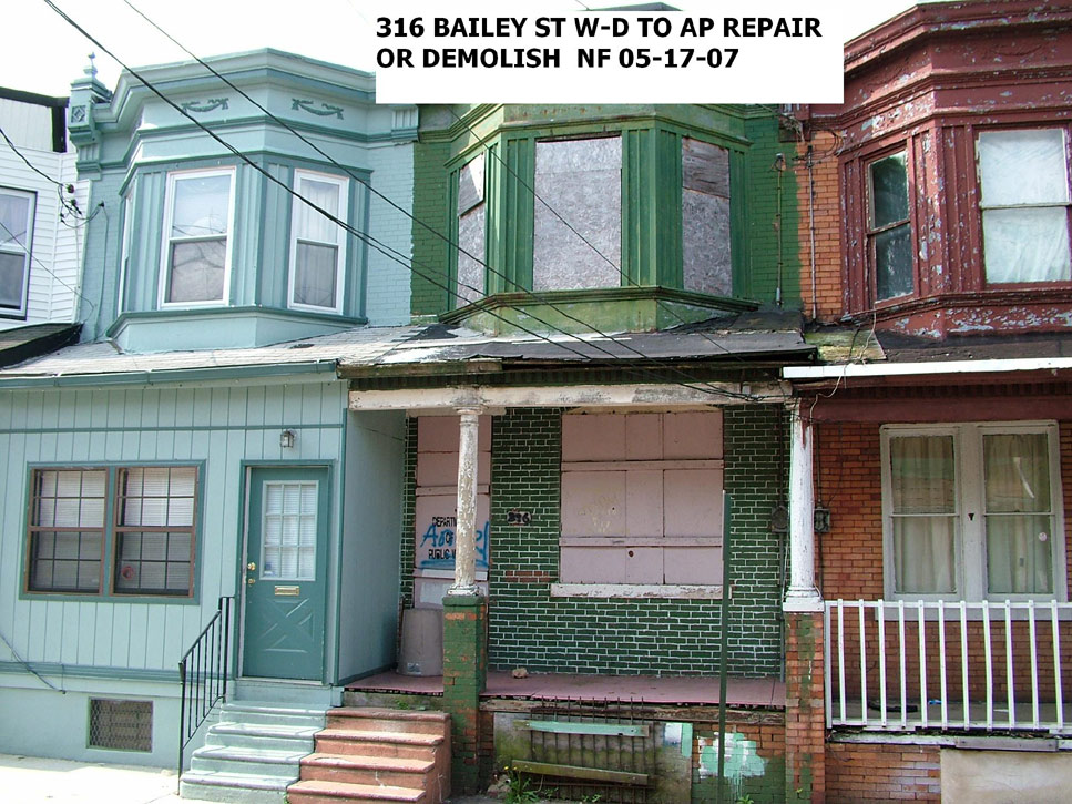 My family lived at 830 Bailey St from 1953 (I was 8 yrs old and in the third grade at Read Elementary school) until 1968. My parents were Herbert and Helen Sampson and have 6 Daughters Anne (me), Helen, Stella, Carol, Michelle and Mary. My father drove oil rigs for Matlack trucking which was later bought out by Hess Oil. After my family left 830 Bailey a Hispanic person bought it. My Father (upright Bass), Al Bush (drums), Al Davidson (guitar) and Ed Bowles (guitar and piano) had a band and they would set up on our porch at Christmas and play music for the neighbors and everyone drank and had a good time. My dad and other guys, Calvin and Carlton "Cush" Krause, David Gladney would get together and set up block parties with beer kegs and music. One time the adults on the block gathered with their lawn chairs up on the corner of 9th and Bailey and one of the kids on the block called the cops reporting a bunch of kids partying on the corner. The cops came and saw all the adults and left. Another time the young guys on the block lifted Robert Morris's Volkswagen onto his porch and when Robert opened his door to go to work or school, his car was there. When the great north eastern blackout happened everyone on the block was watching the first showing of Outer Limits on TV. It just said "We control your TV" and all the lights went out. The Krause's and us and other's on the block ran out on our porches and freaked out. I remember the man going down the back alley way yelling " Clothes props, come and buy your clothes props. The kids on the block played in the alley ways a