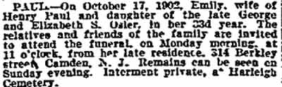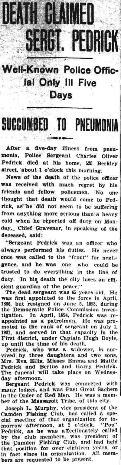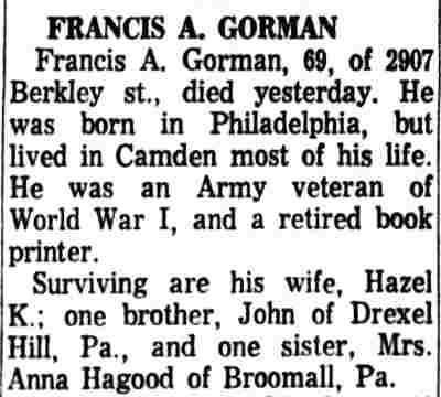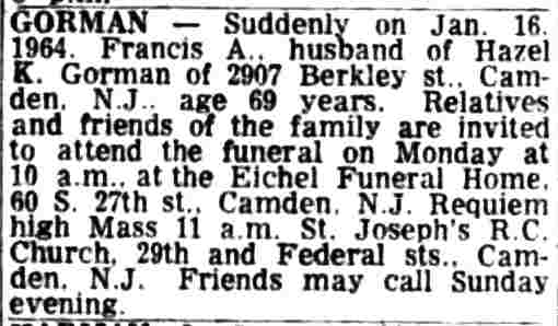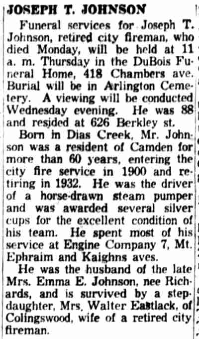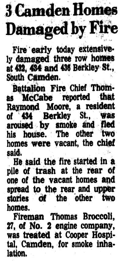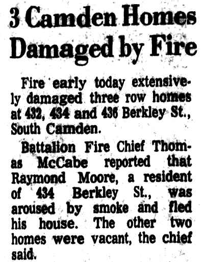 1920s (After 1924) - 1970 Harold Lorang was a member of the Camden Fire Department until his death in 1931. He left a wife, Margaret, and sons Harold Jr. and John. The family stayed on Berkley street until 1970, when Mrs. Lorang passed. |