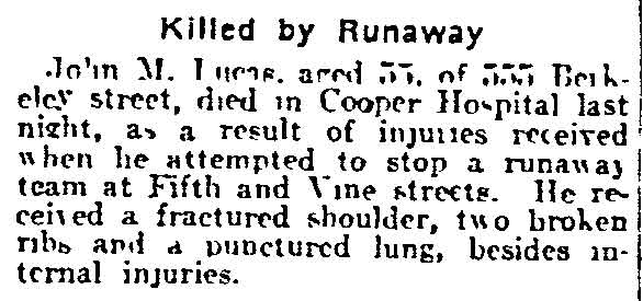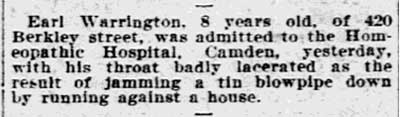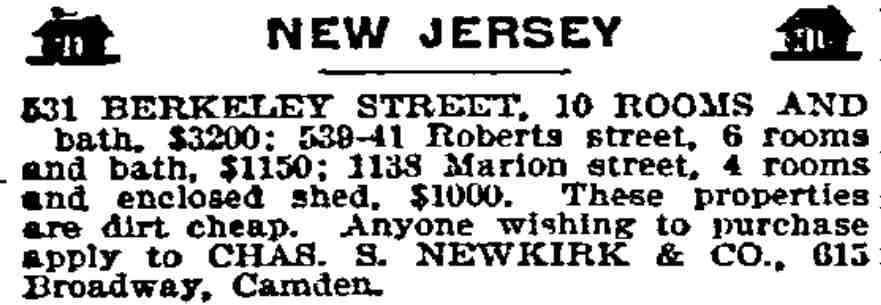 BERKLEY STREET was originally and was for many, many years spelled Berkeley Street. The street was named for Lord Berkeley, who, with Sir George Carteret owned the colony of New Jersey from 1664 to 1674. When originally laid out, Berkley Street east of Broadway was known as Hamilton Street, in honor of Hamilton Beckett of London, England, the son of Henry and Mary Beckett. The Becketts at one time owned the land from Royden to Line Street and from West to second street . In 1882, to avoid confusion, the name ofHamilton Street was dropped, and the street became Berkley Street for its entire length. Similar adjustments were made for Washington Street and Clinton Street. In 1902 the Pennsylvania Railroad opened up a series of freight sheds on South second street at berkley street. The 200 Block of Berkley Street was razed along with several other blocks west of South 3rd and south of Mickle Street around 1970 to make room for the Royal Court Townhomes and the Mickle Tower apartment building. |