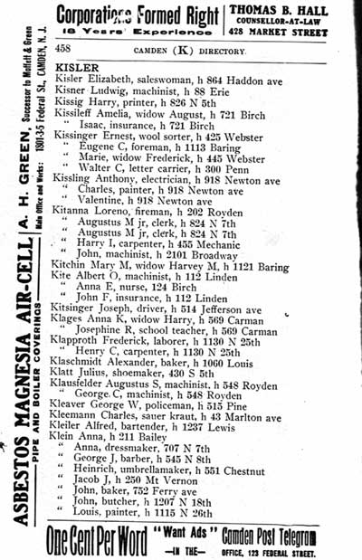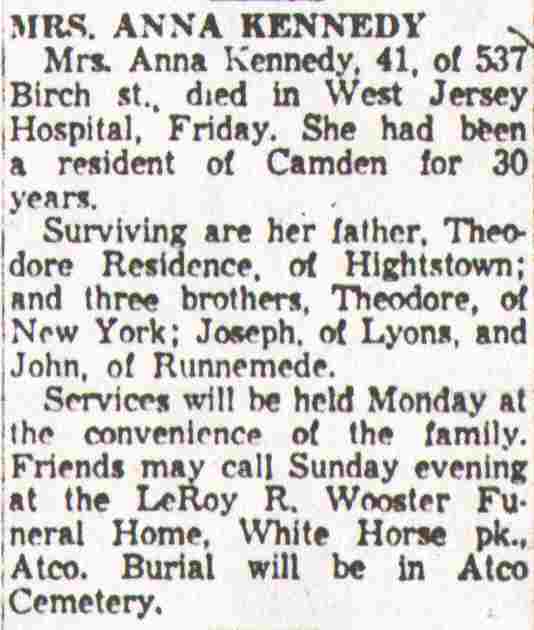 1933 William H. & Mamie Davis Camden Courier-Post |