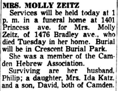 Funeral services for Carlind E. Myers, 53, husband of Mrs. Hazel P. Myers, who died Wednesday night at his home, 1409 Bradley Avenue, will be held at. 2 p. m. tomorrow at the Holl Funeral Home, 1401 Princess Avenue. Burial will be in Harleigh Cemetery. Mr. Myers was a machinist and was formerly employed by the W.W. Morton Machine Company. He lived with his wife at the Bradley Avenue address for 21 years. Mr. Myers had been ill more than a year. He was a member of Wyoming Tribe of Red Men. Besides his widow he is survived by his father, George B. Myers, of Toronto. |