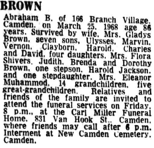 4 Branch Village 1960 Mrs. Ada J. White Camden Courier-Post |