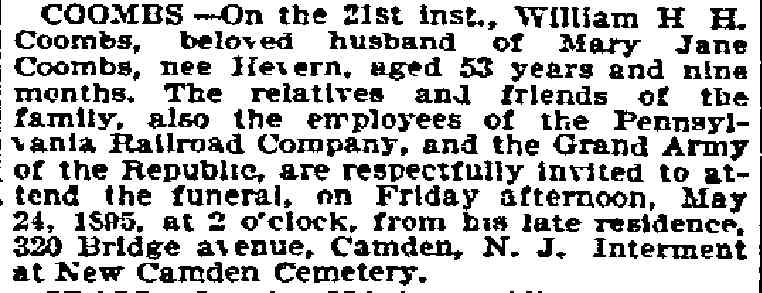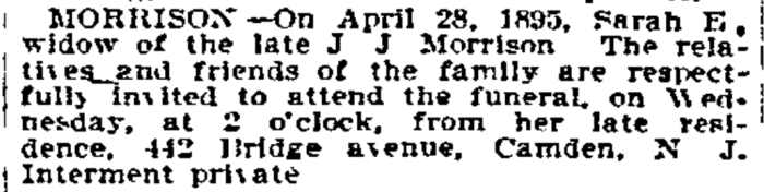 Corner of South 6th Street & Bridge Avenue 595 Bridge Avenue aka 39 South 6th Street 1892-1893 Camden City Directory 1890s 1890s-1921 |