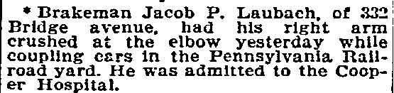 1924 Thomas Brown Camden Courier-Post Click on Image to Enlarge |