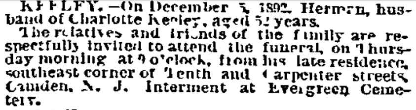 Pratt Herman Keeley was born Herman Kuhle, and appeared in City Direcotories under that name until 1888. The 1890-1891 Directory indicates that he had "Americanized" his name to Keeley, and his obituary in December of 1892 also uses this spelling/ The "Keller" spelling in the article at left is incorrect. |