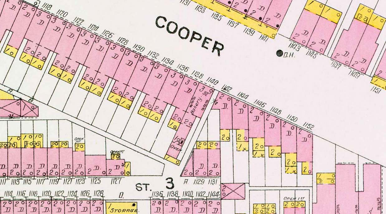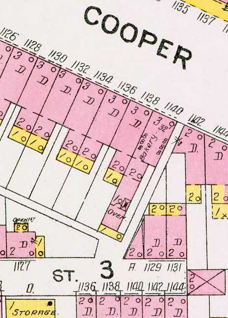 The "intersection" was actually "Richman Alley", an alley that ran from Carpenter Street out to Cooper Street, between 1140 and 1142 Cooper Street. |