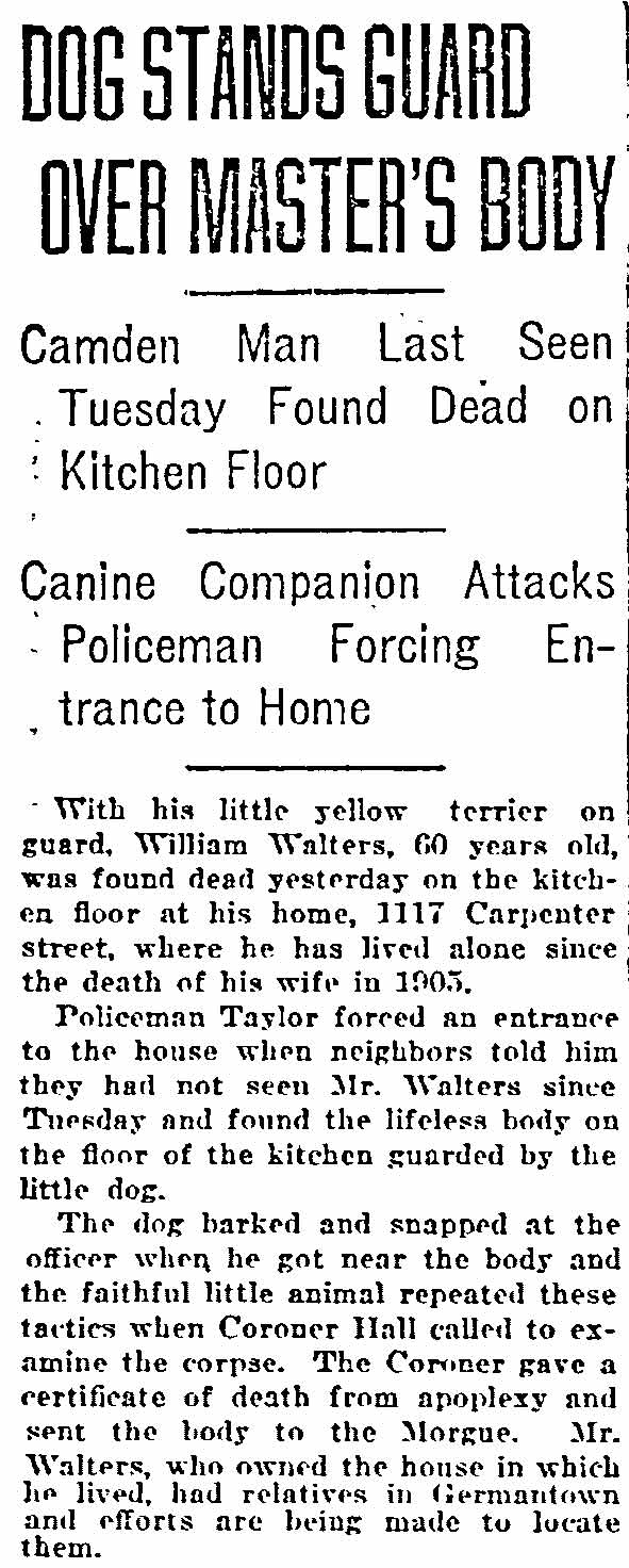 1117 Carpenter Street 1920 Camden Post-Telegram Edward Middleton |