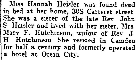 Mrs. Frank B. Hanna and daughter, Miss Betty Hanna of 450 Carteret street, leave today for Ocean City where they will spend the Summer. They will be joined over the weekends by City Commissioner Hanna. |