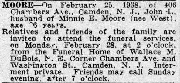 1938 Mrs. Evelyn Connelly Camden Courier-Post |