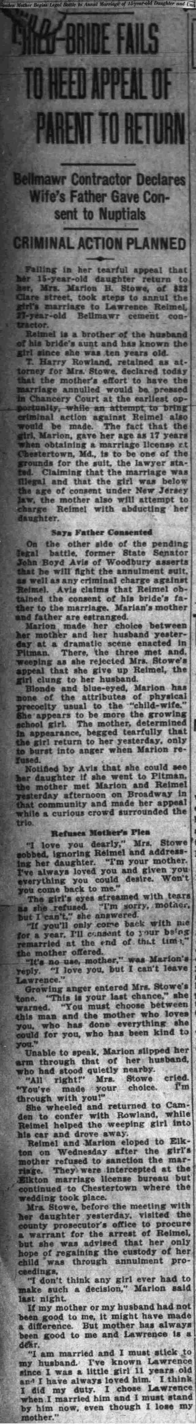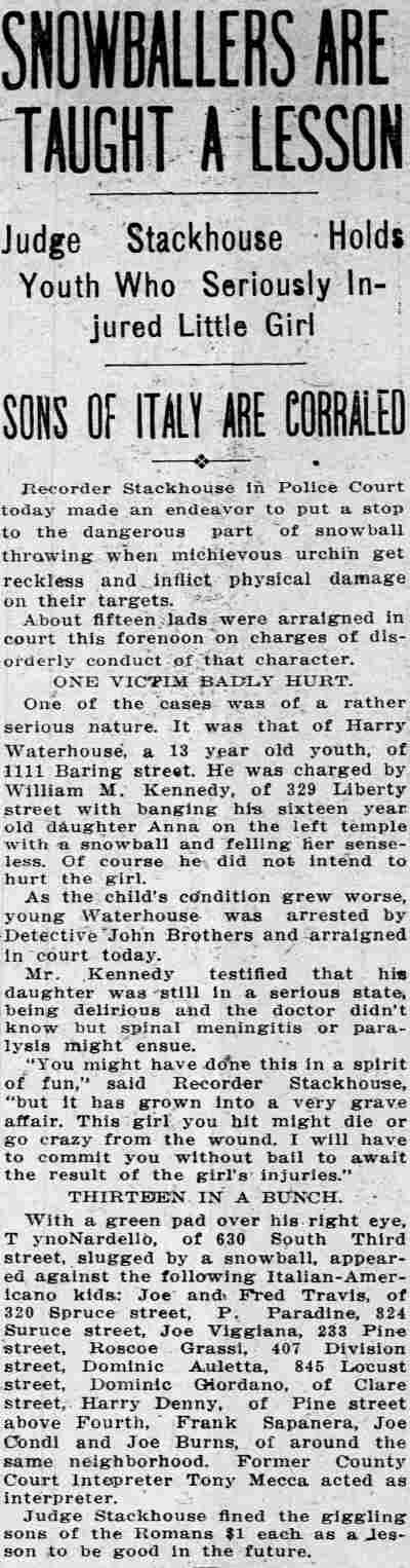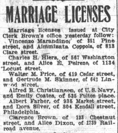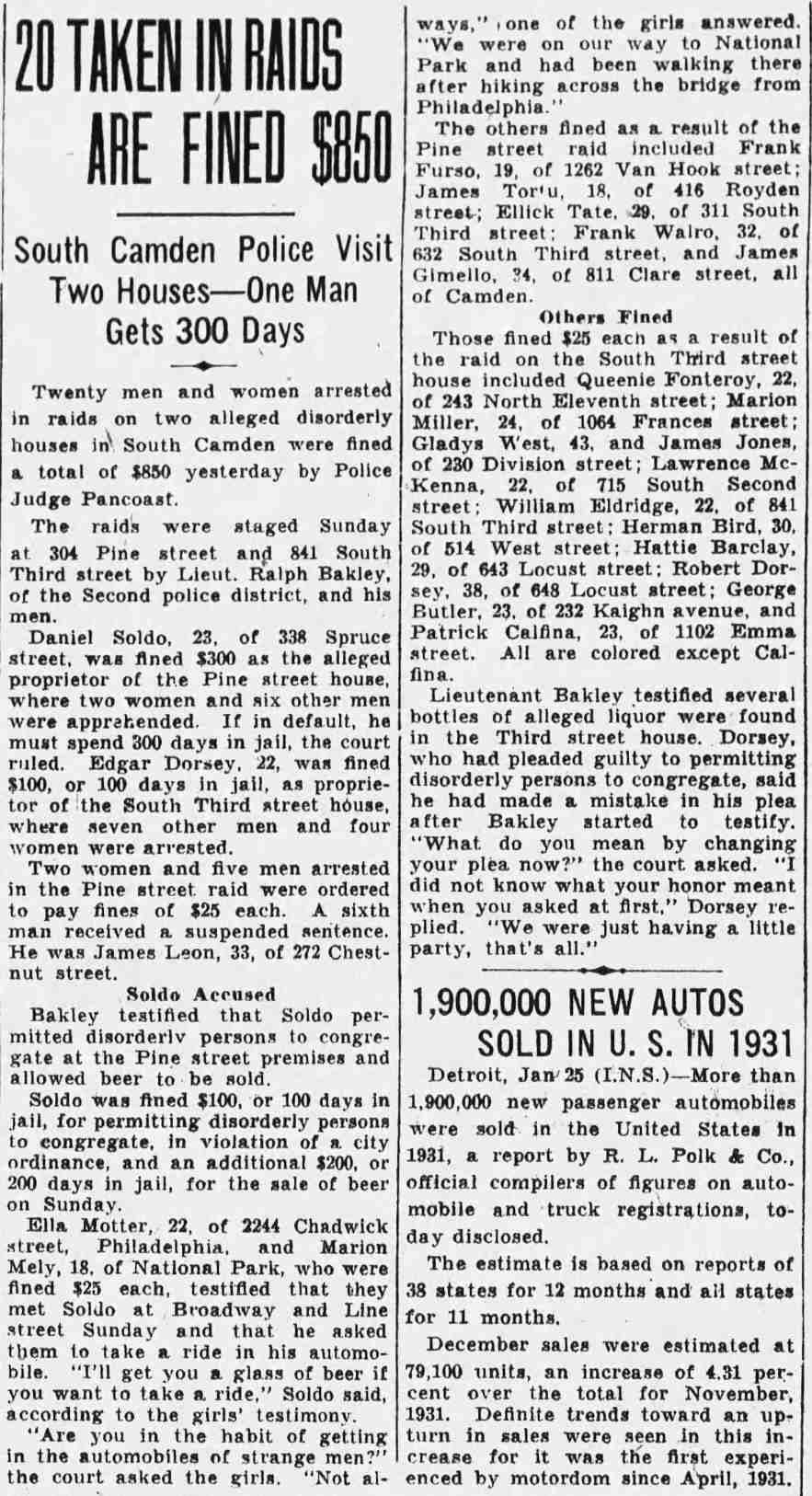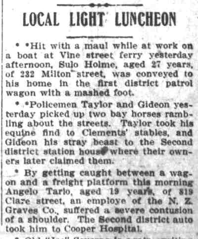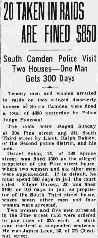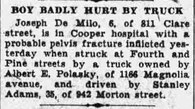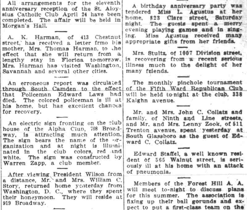 813 Clare Street 1914 Dominic Giordano Camden Daily Courier Harry Waterhouse O. Glen Stackhouse Click on Image to Read |