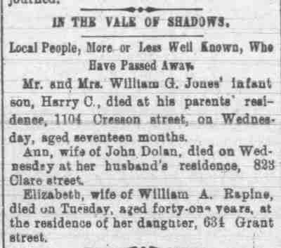 811 Clare Street 1896 Benjamin Cavanaugh Camden Daily Courier Ella Mitchell aka Bella