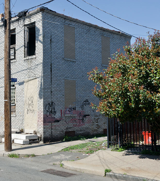 CLARE STREET is a one block thoroughfare that runs south, from 338 Pine Street to 335 Division Street, in South Camden. It was originally called Pine Avenue, and appears to have been renamed between 1878 and late 1889 or early 1890. Concerning the Clare Street listings in the 1887-1888 and 1888-1889 directories, the house number patterns are inconsistent with the location. The 1890-1891 directories have the proper house numbers. By 2010, if not sooner, there were no homes remaining on Clare Street. Clare Street was renamed Jesthroe Hunt Sr. Lane by the City of Camden to memorialize former Camden Fire department member Jesthroe Hunt Sr. after his passing in 2005. |